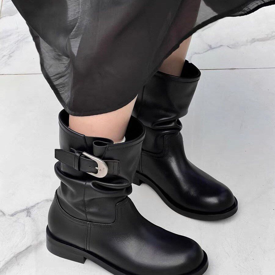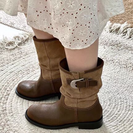 2025秋冬新款真皮复古西部牛仔靴女短靴百搭舒适马丁靴女靴子短筒