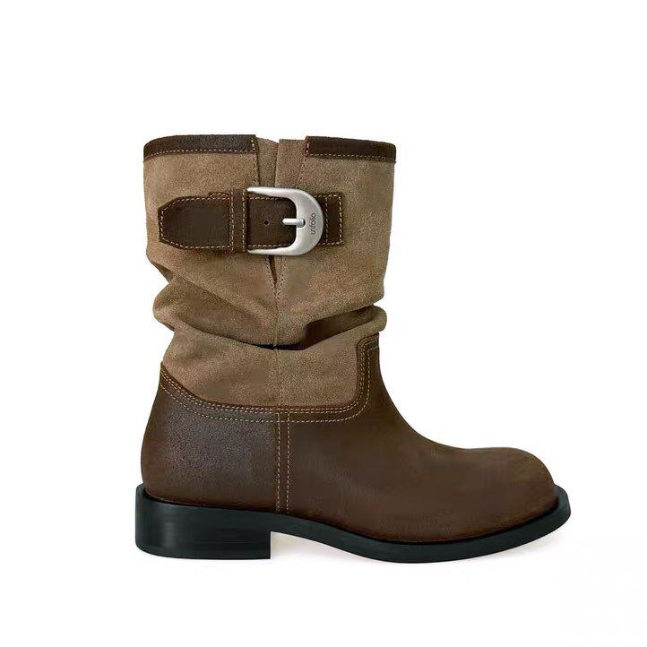 2025秋冬新款真皮复古西部牛仔靴