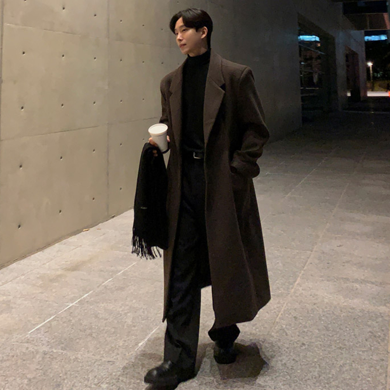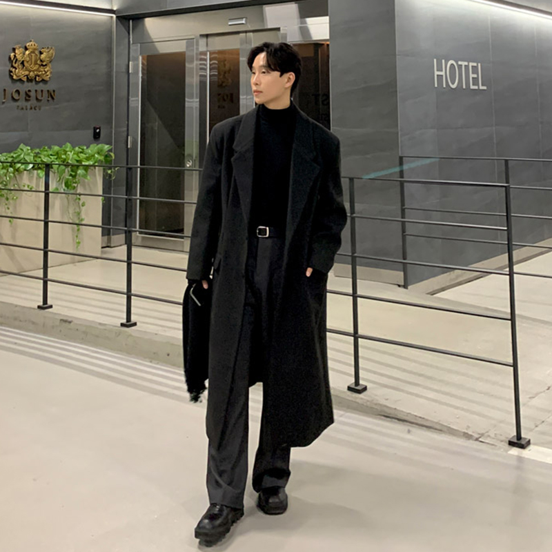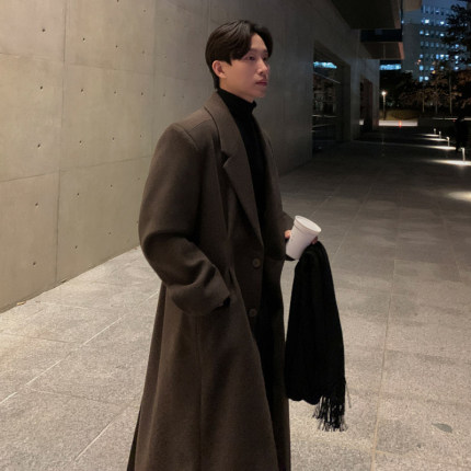 韩版毛呢大衣男中长款加厚过膝休闲潮流宽松高级冬季风衣呢子外套
