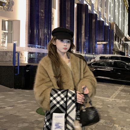 JAMUUS韩版晕染霜色短款环保皮草秋冬慵懒洋气保暖毛毛外套女