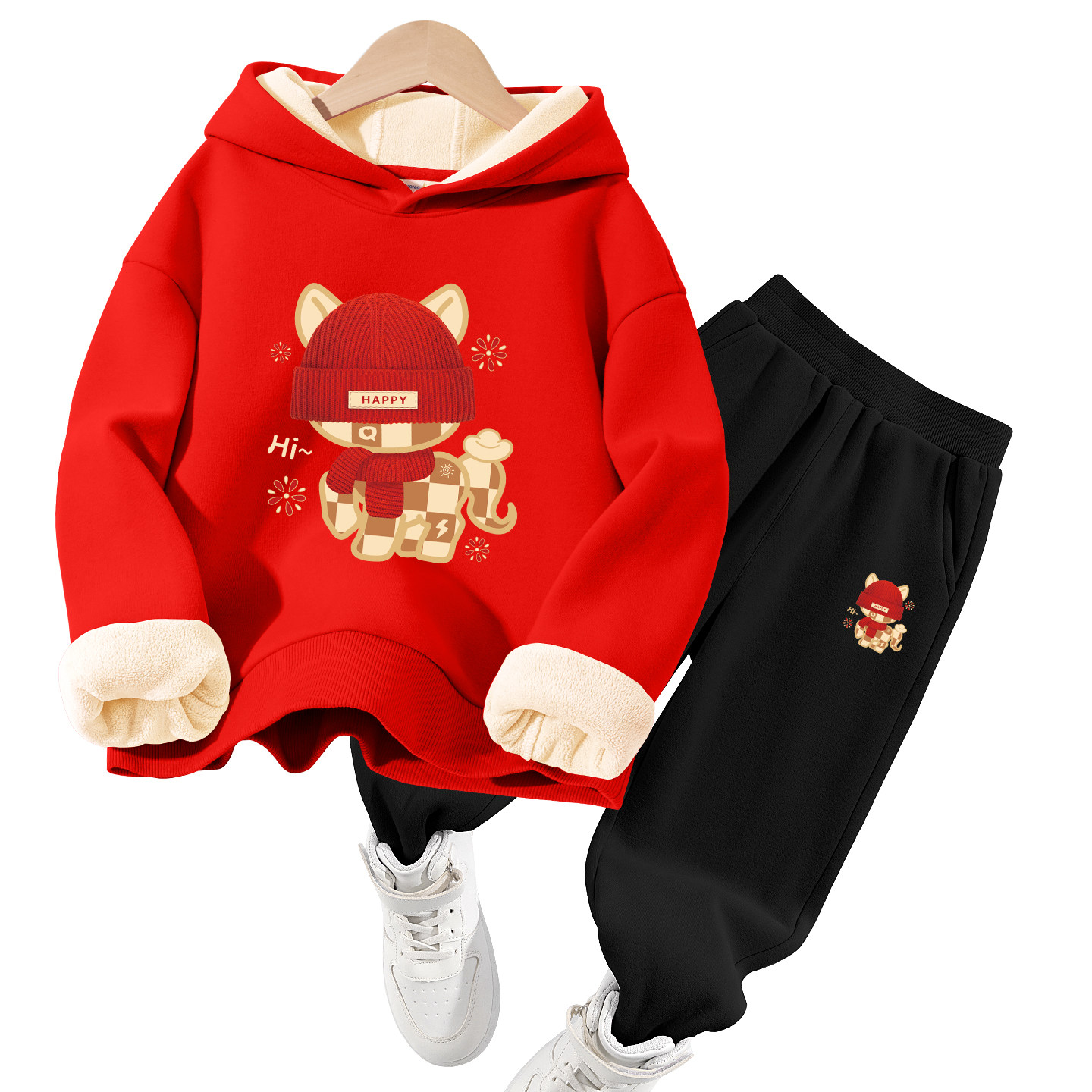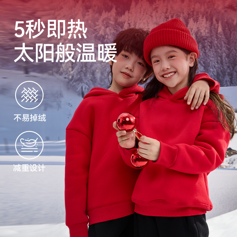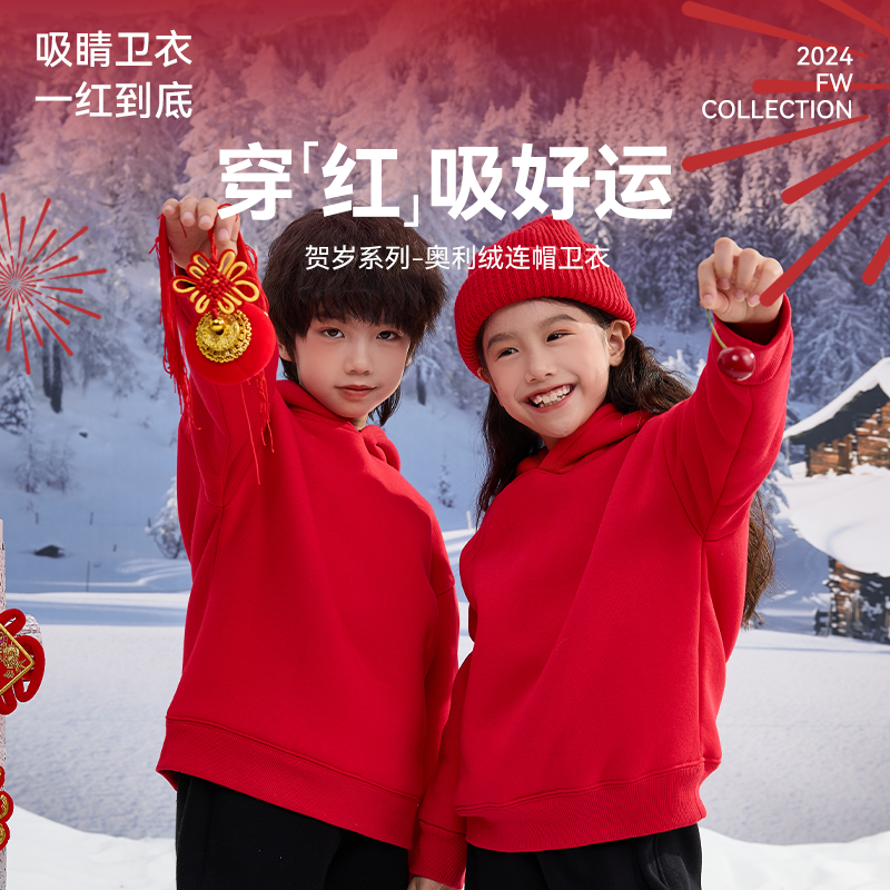 真维斯男童本命年12岁套装2025新款加绒加厚冬装冬季儿童红色卫衣
