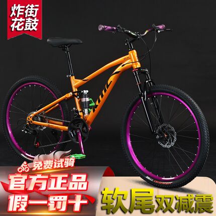 软尾山地自行f车变速双减震单车成人青少年学生男女120响炸街土坡