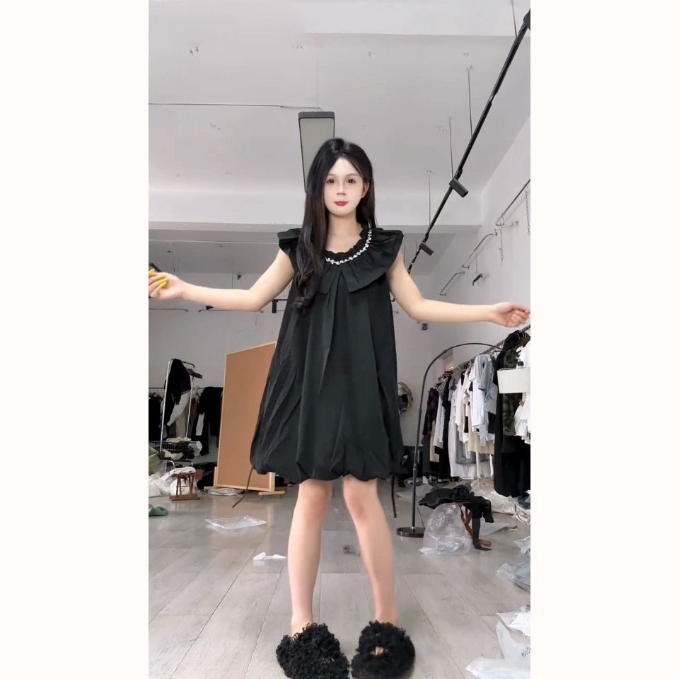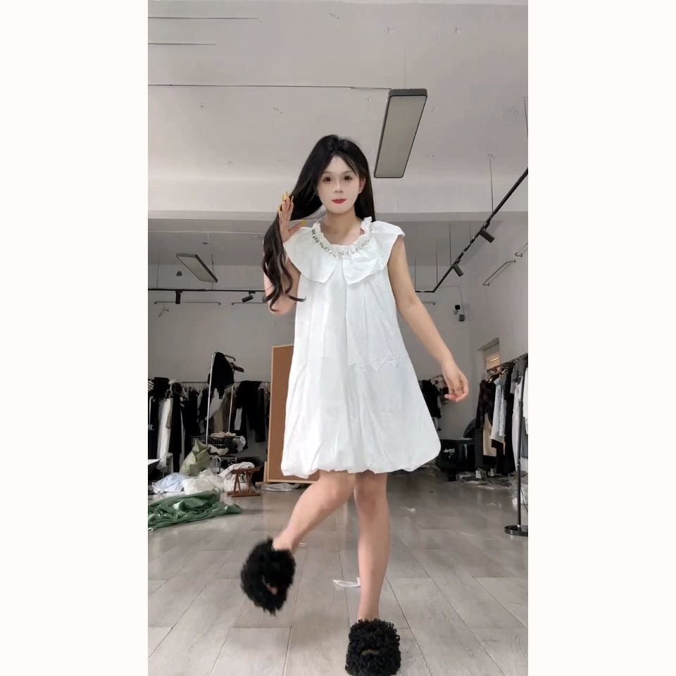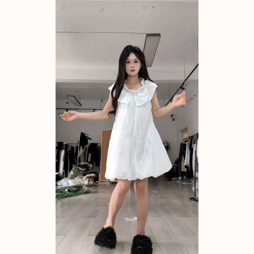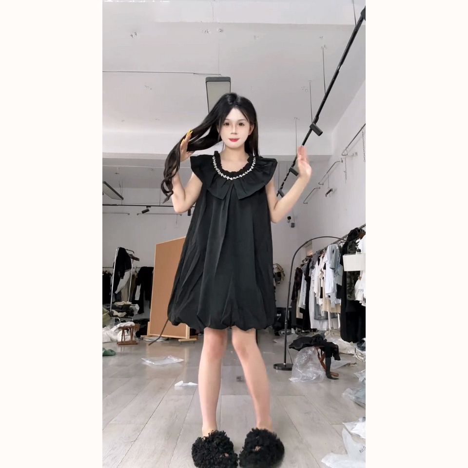 法式甜美学院风镶钻连衣裙女学生韩版宽松显瘦夏季新款小个子短裙