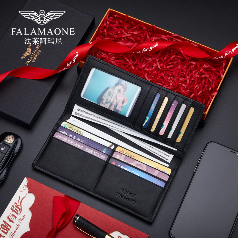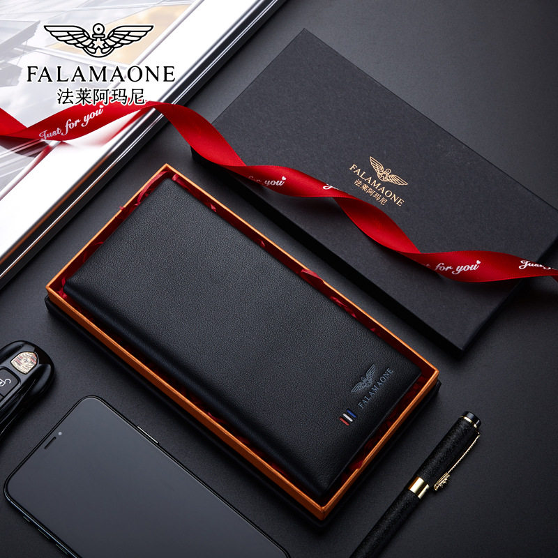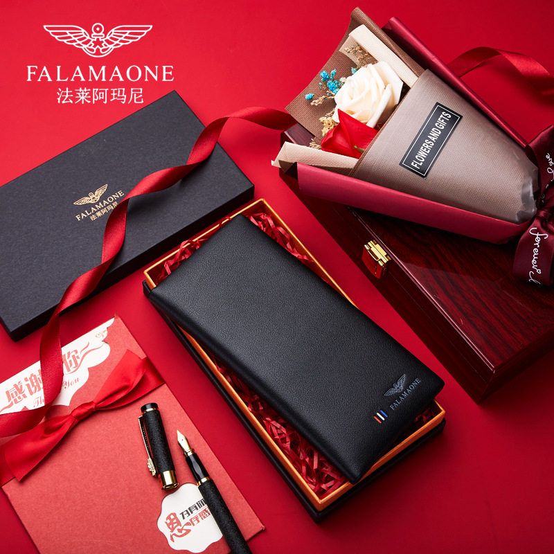 正品法莱阿玛尼男士钱包真皮长款520送父亲老公生日男友七夕礼物