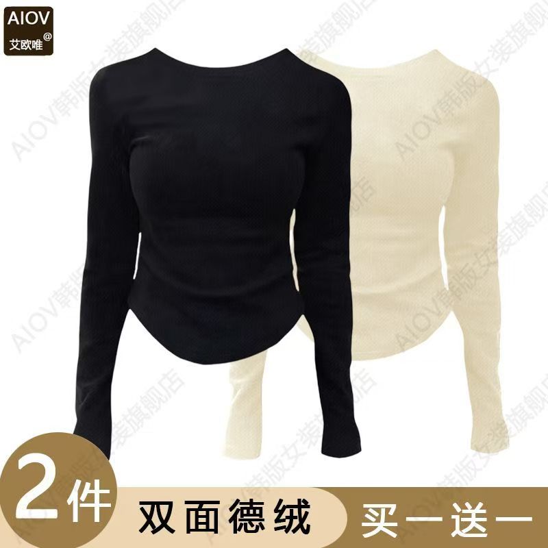 圆领德绒打底衫内搭秋冬女2025新款长袖大码T恤软糯新款保暖上衣A