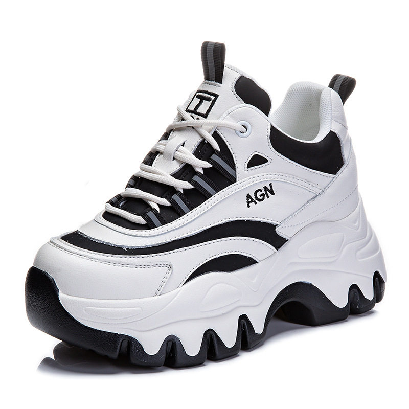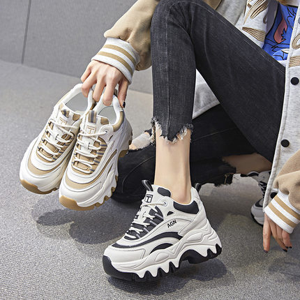 ins老爹鞋女2025春季内增高8cm牛皮休闲鞋百搭厚底运动单鞋高跟