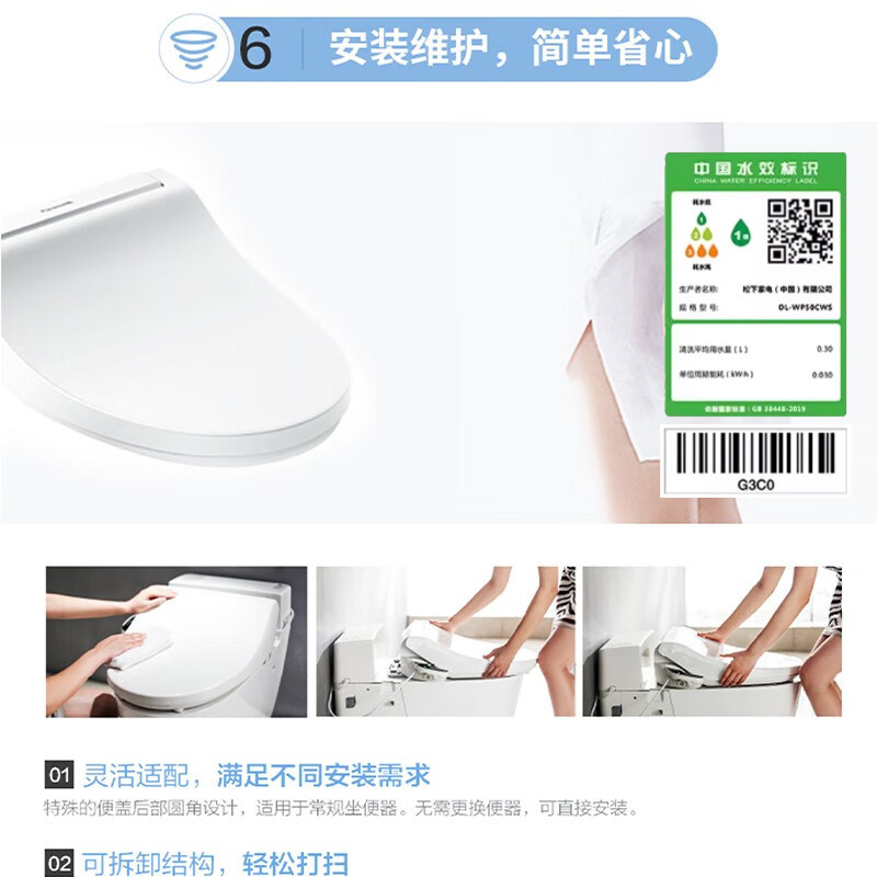 松下智能马桶盖WP50双重即热全功能自动关闭坐便盖柔光夜灯洁身器