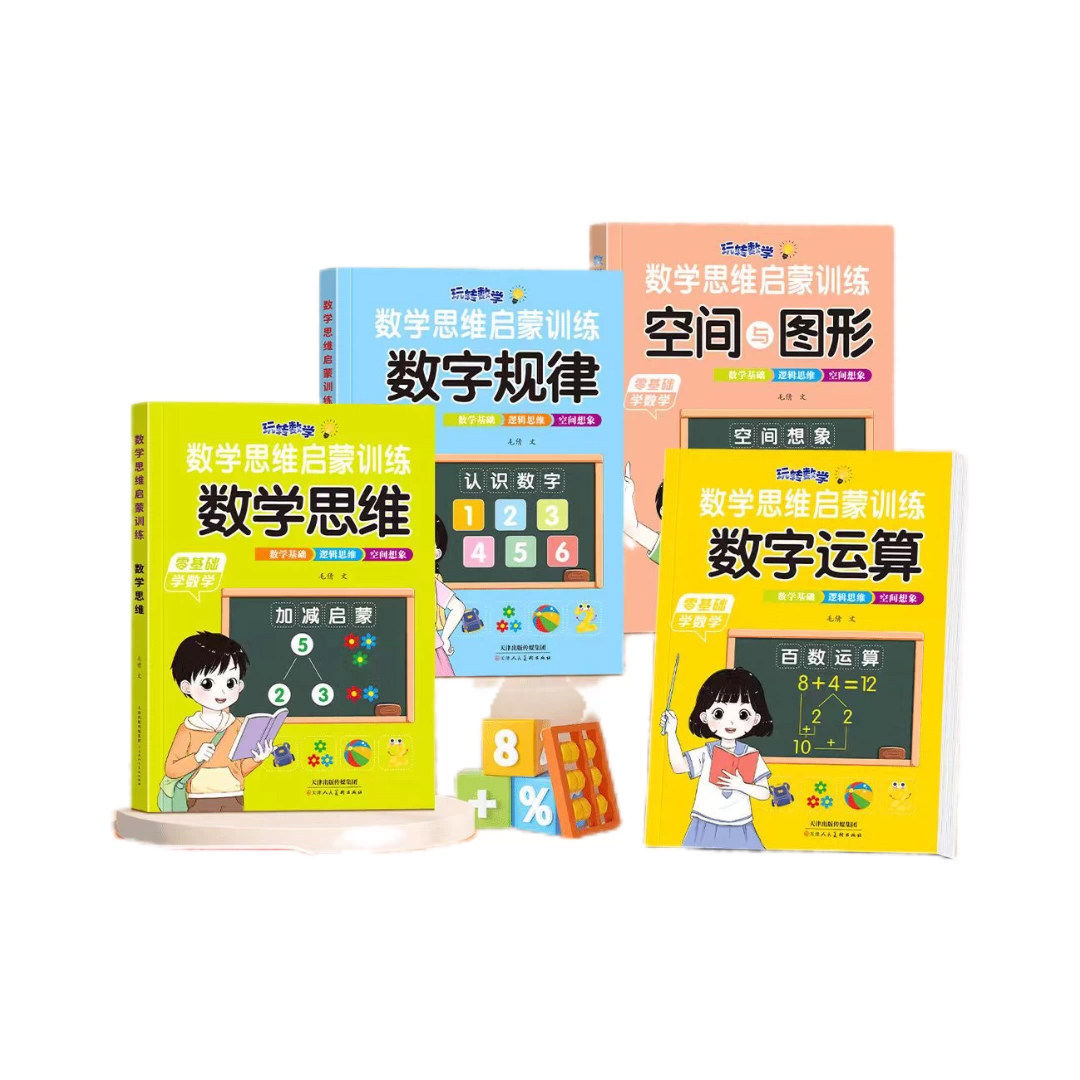 全4册 数学思维启蒙训练 3-6-9岁 数字运算数学思维数字规律空间与图形培养儿童认知水平 空间想象和运算能力幼儿学前启蒙训练书