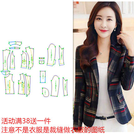 三轻奢短外套纸样413百搭显瘦格子小西装服DIY1:1女装服装剪图纸