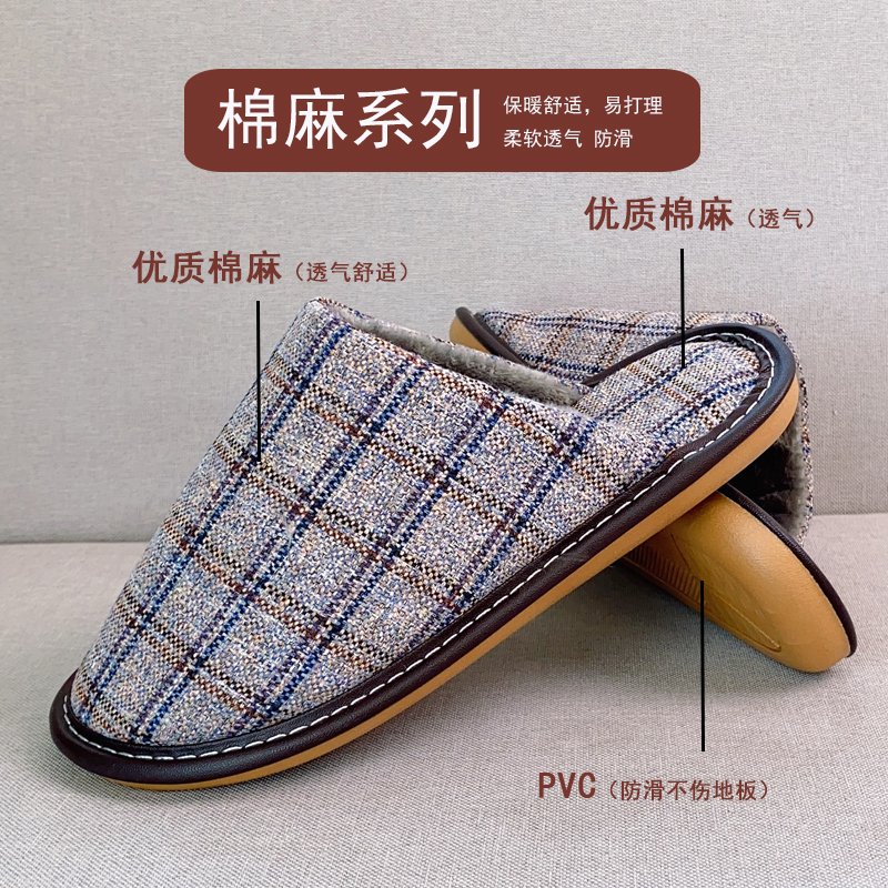 棉麻布艺保暖棉拖鞋男四季情侣居家室内地板月子防滑软底女秋冬季