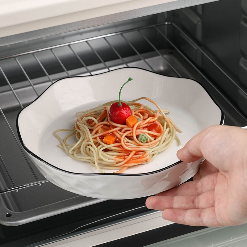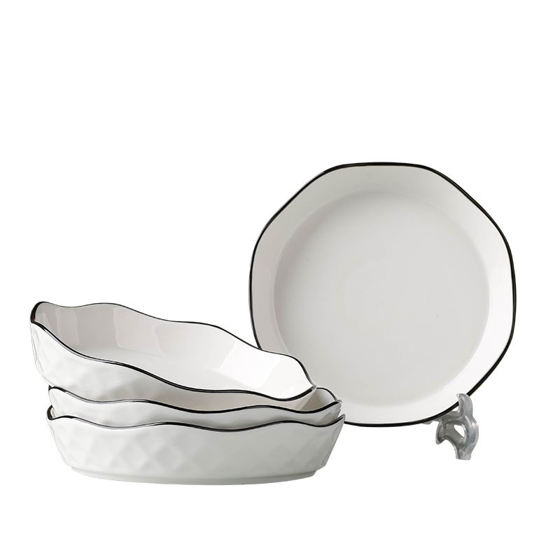 黑线家用创意g莲花盘子陶瓷菜盘日式网红大号碟子纯白新款牛排餐