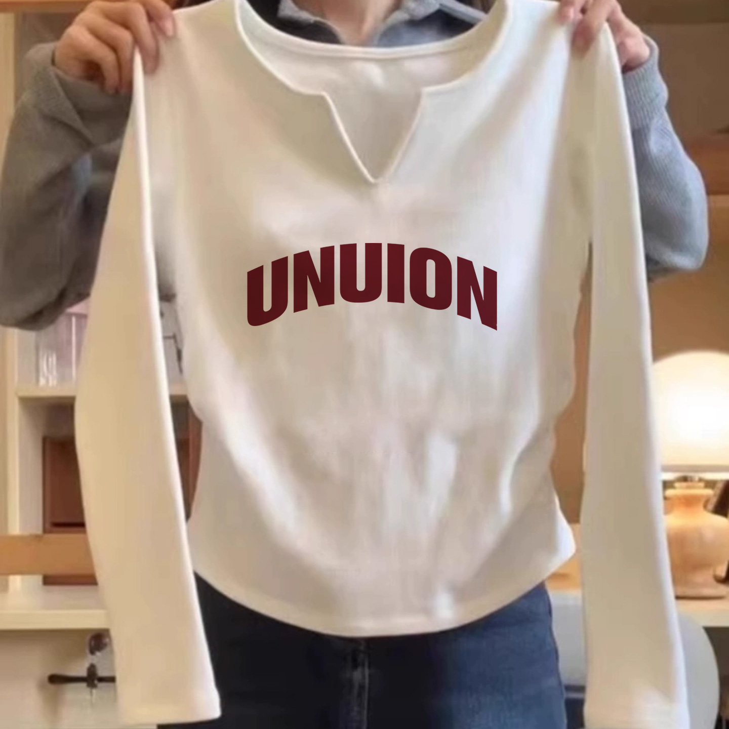 小v领纯棉长袖t恤女2025新款冬季加绒内搭打底衫早秋chic别致上衣