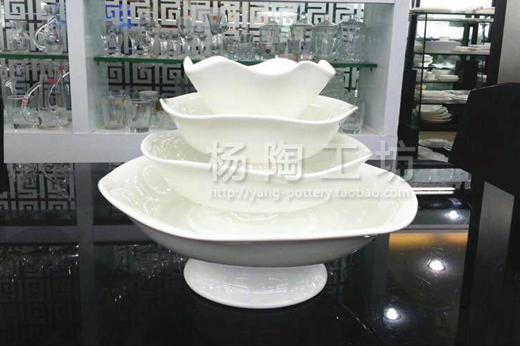 高脚荷口碗/荷叶边陶瓷碗/中餐菜盘/宫廷风上汤碗/水果盘/凉菜盘