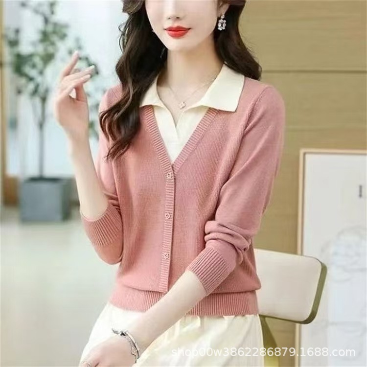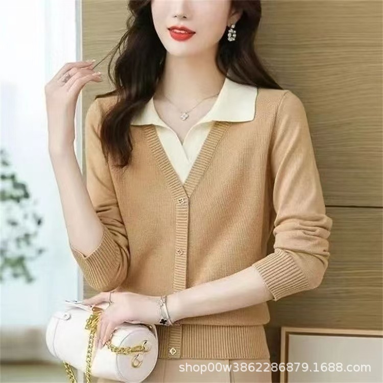 8年老店 秋季新款针织衫假两件套头发翻领长袖宽松外穿时尚洋
