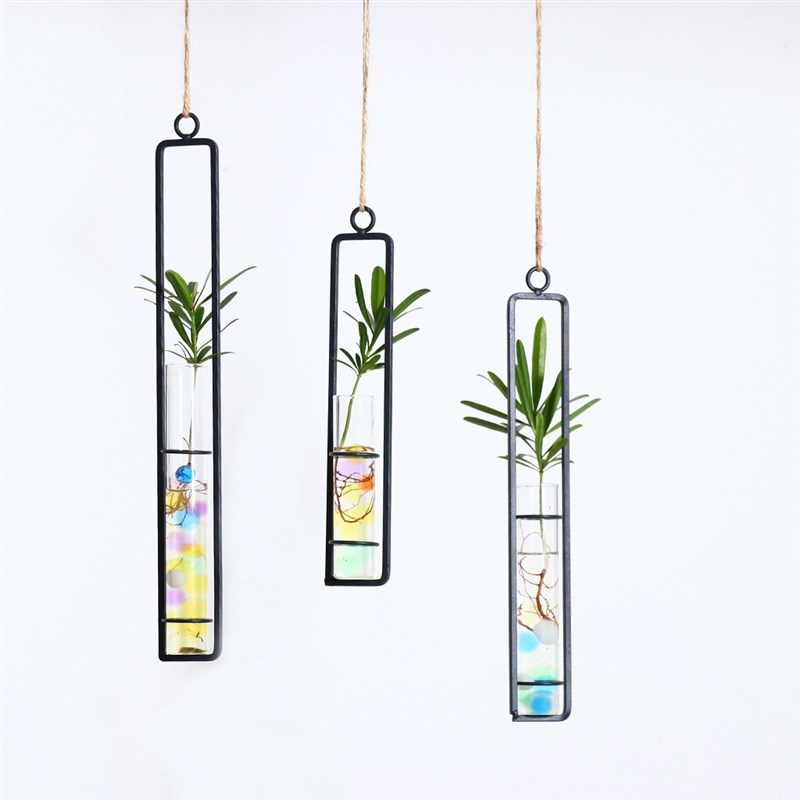 创意壁挂花器铁艺玻璃水培花瓶透明悬挂试管插花吊瓶简约家居装饰