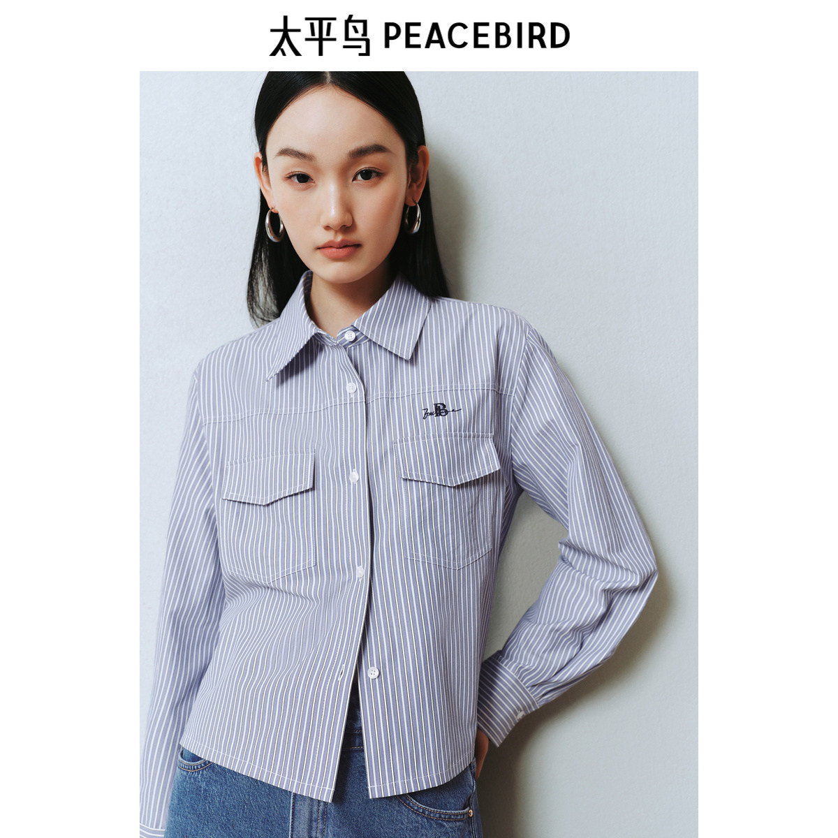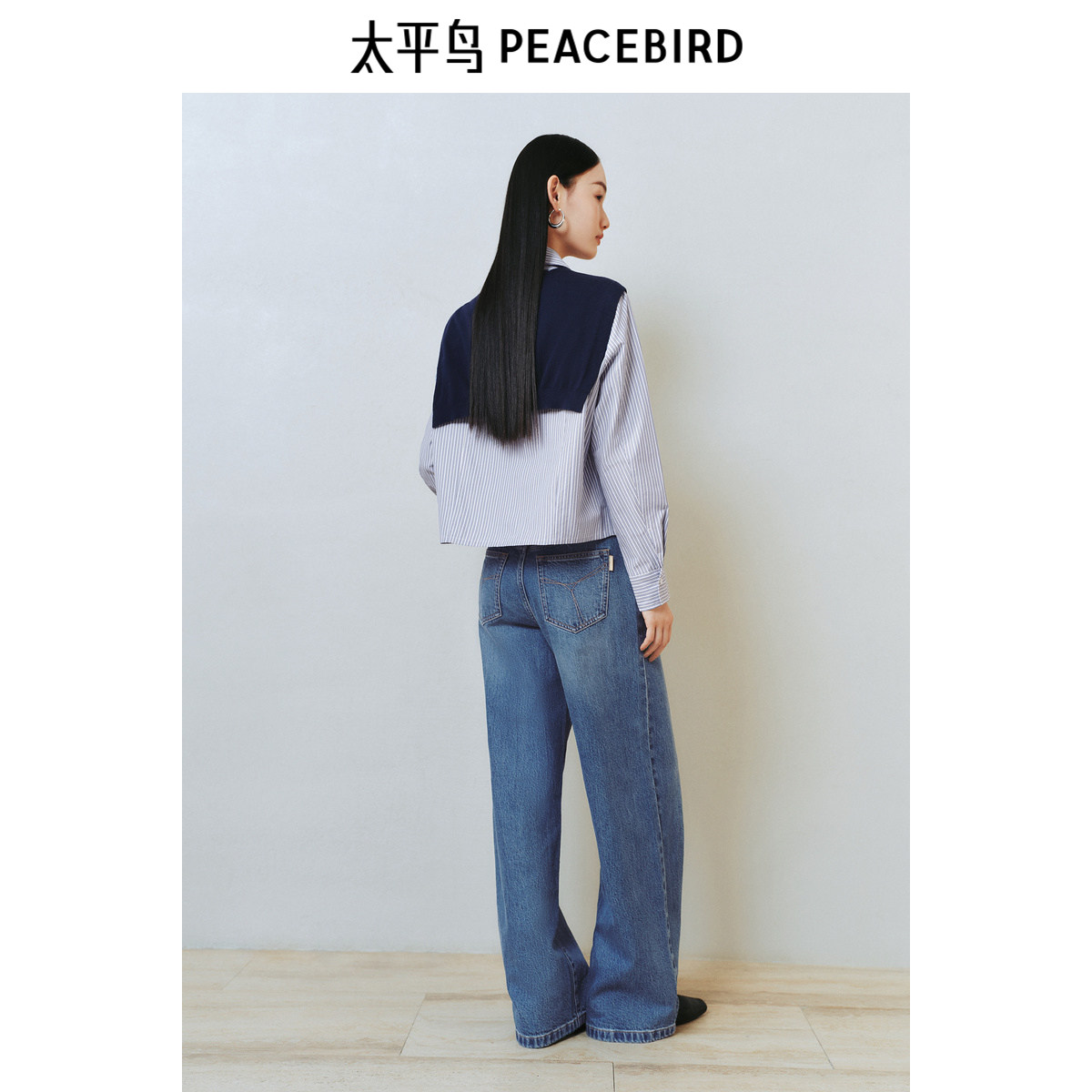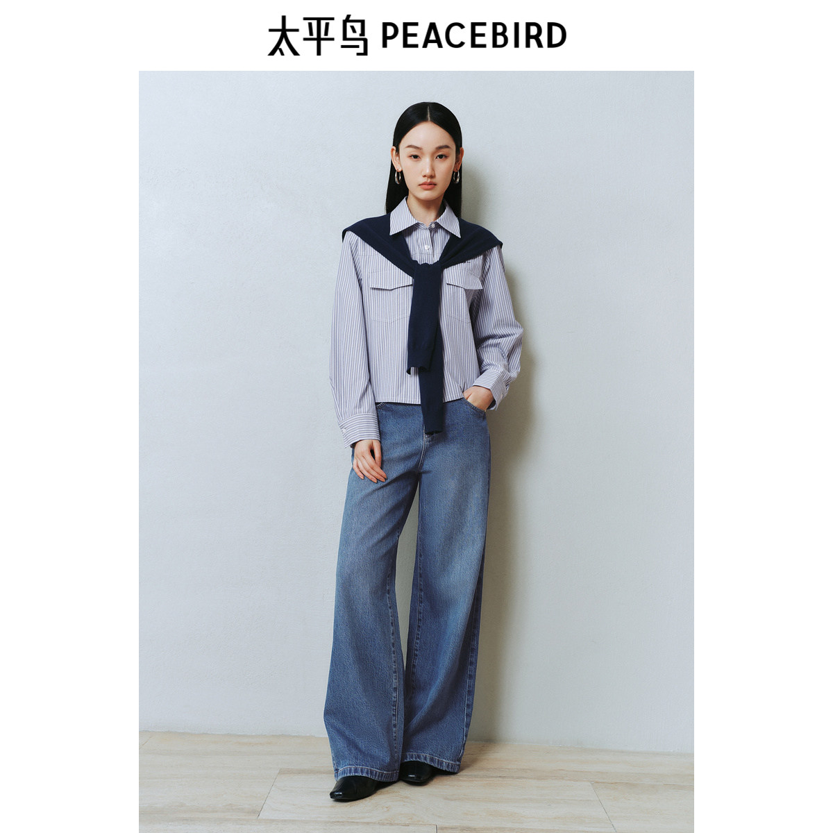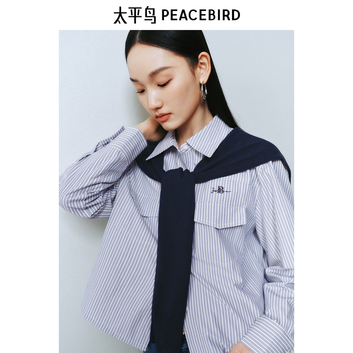 太平鸟女装2025年新款条纹混纺可拆卸毛衫披肩搭配衬衫A1CAF1256