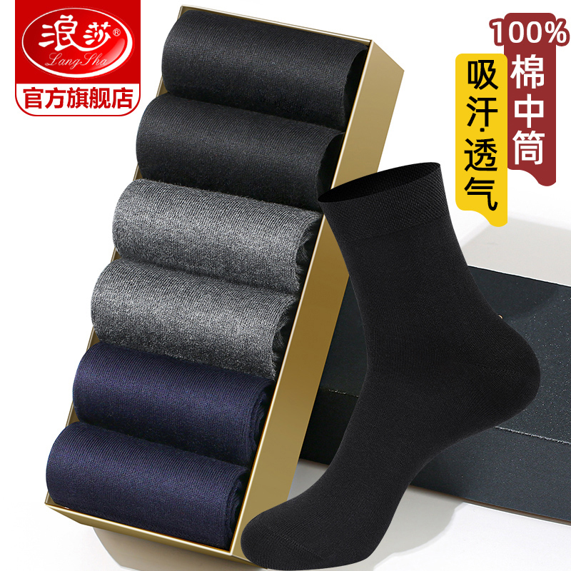 浪莎男士纯棉秋冬全棉中筒袜防臭