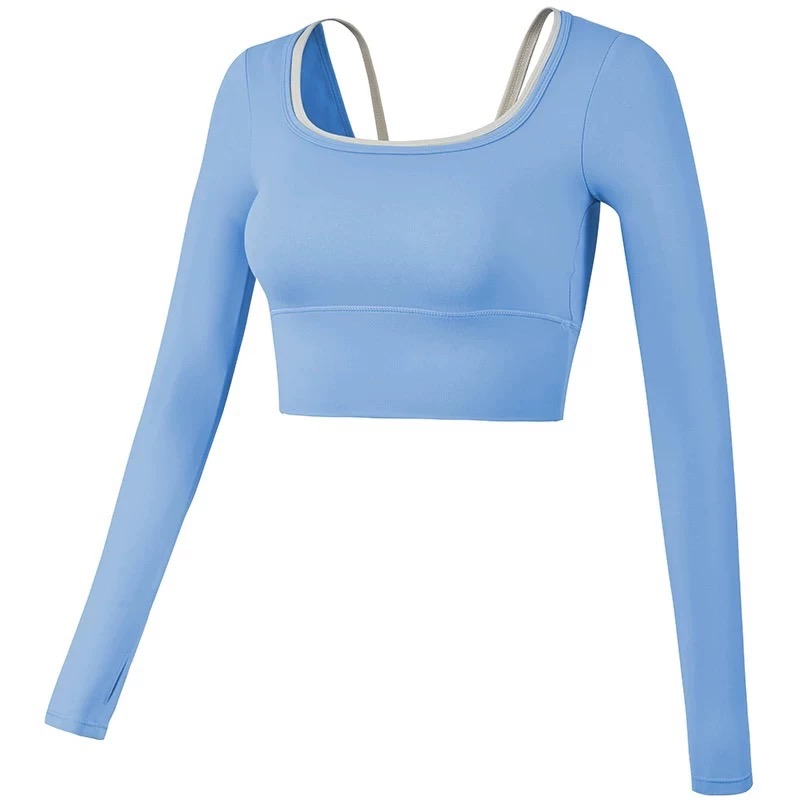 长袖瑜伽服上衣女带胸垫夏季款跑步紧身显瘦训练网红运动健身服