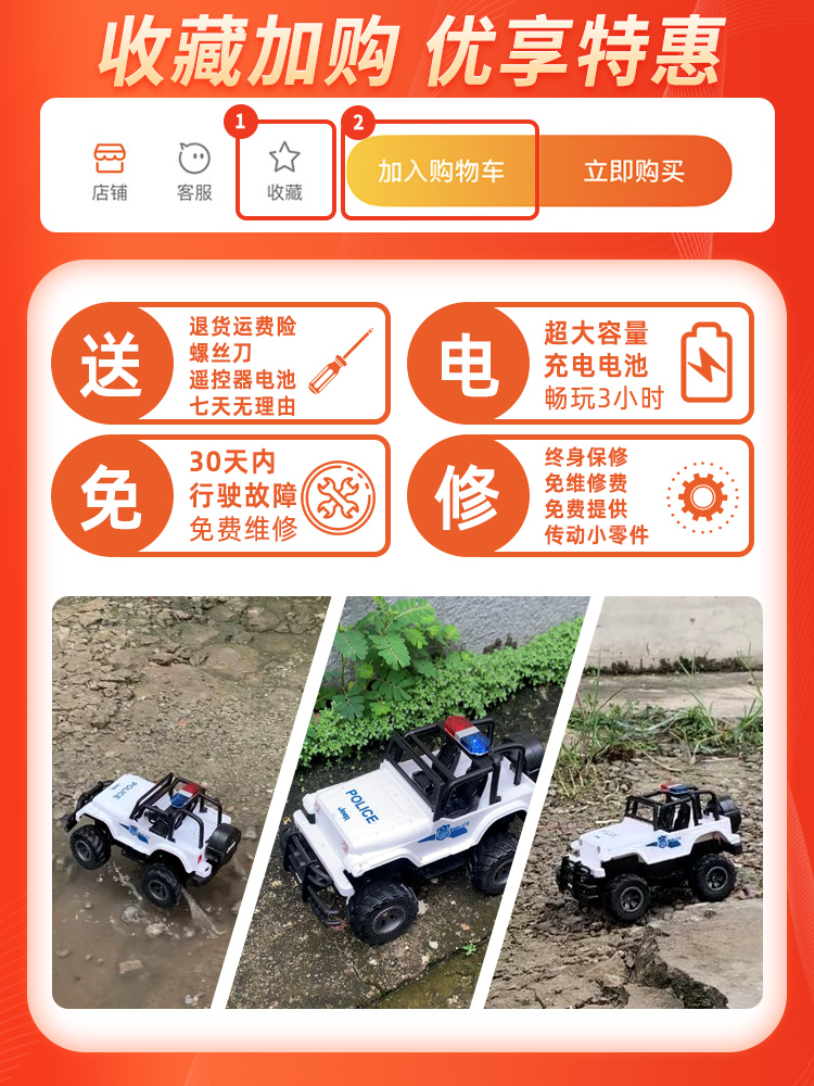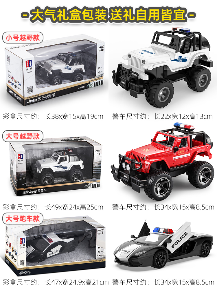 双鹰大号遥控警车儿童吉普越野车充电动攀爬汽车玩具男孩生日礼物