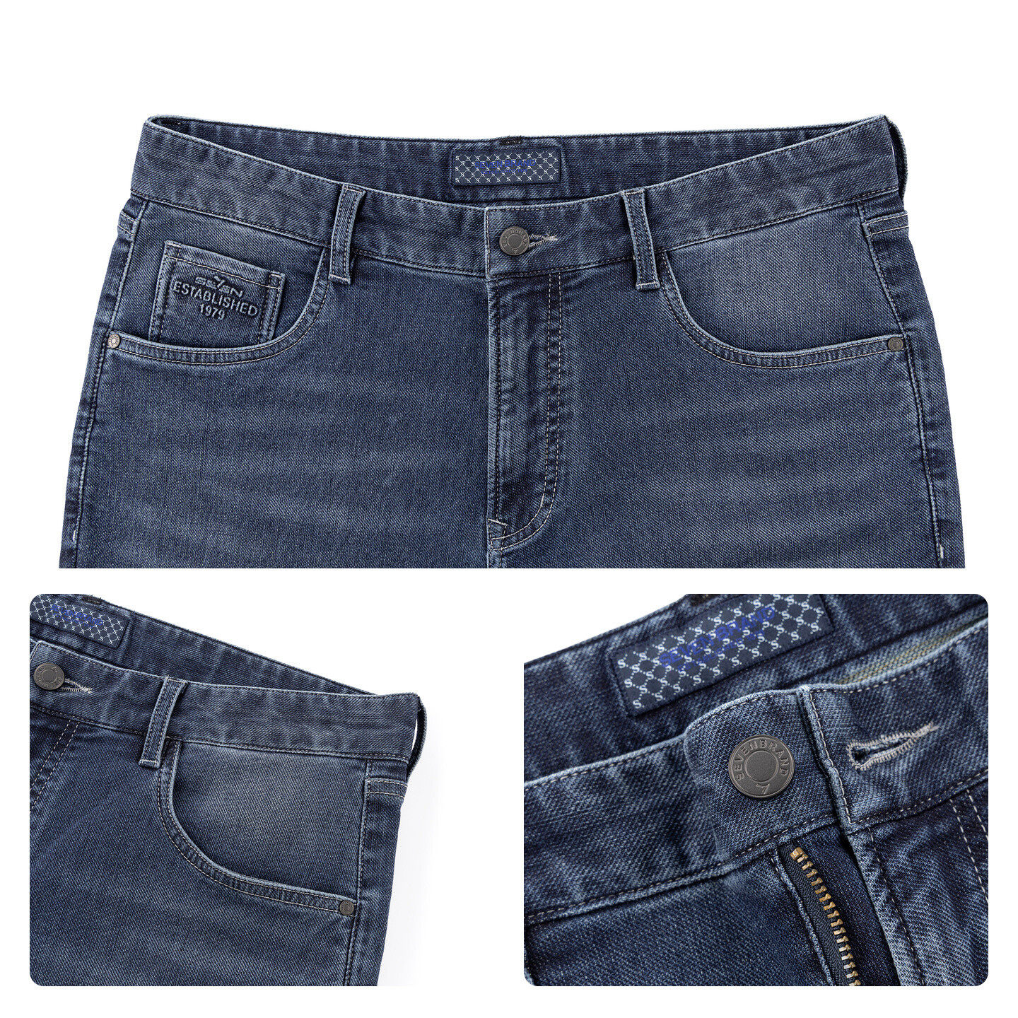柒牌2025春季新男装修身牛仔裤男九分裤蓝色商务休闲耐磨春季新品