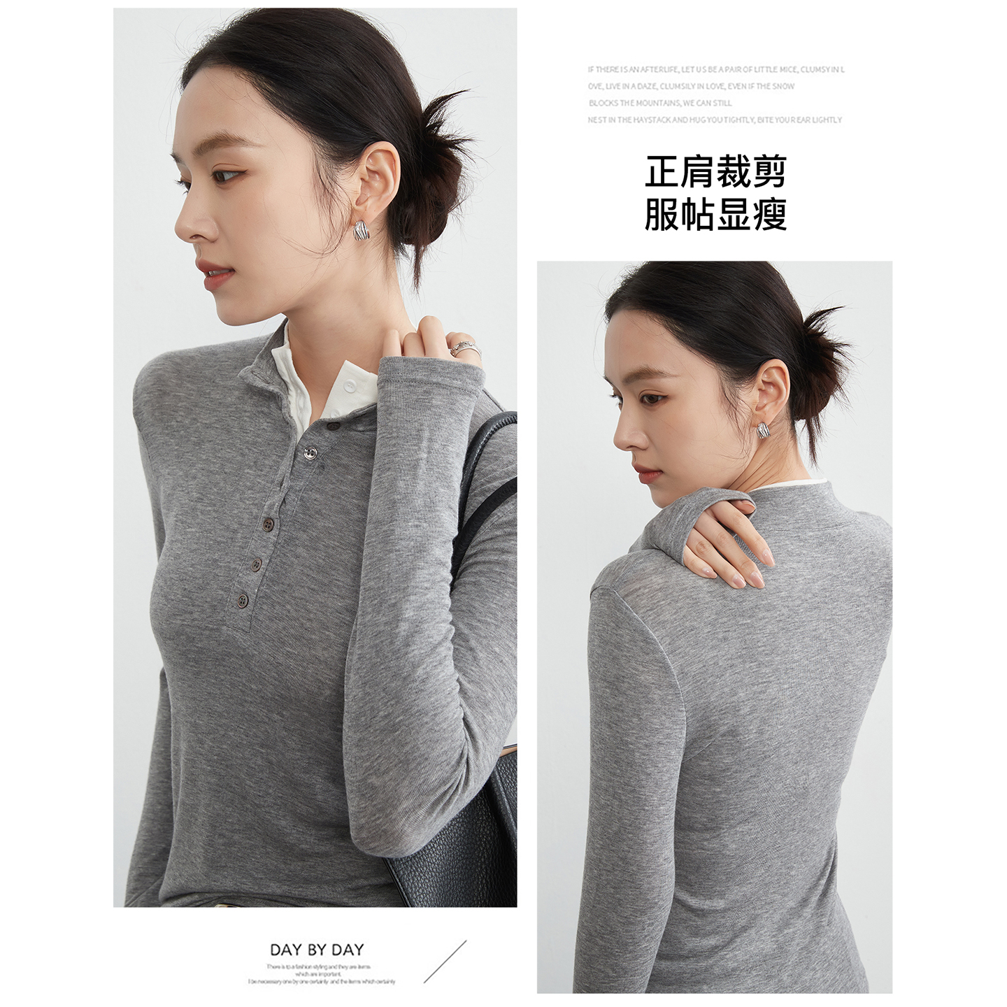 天丝羊毛假两件打底衫女修身内搭