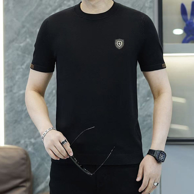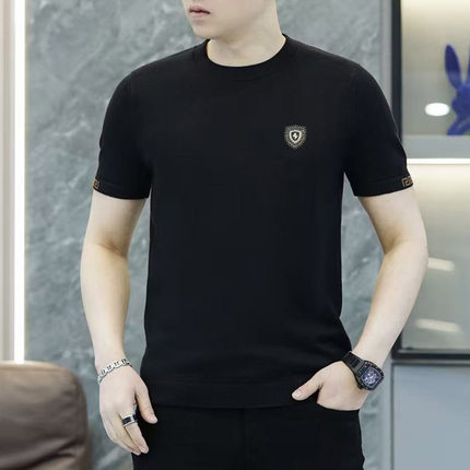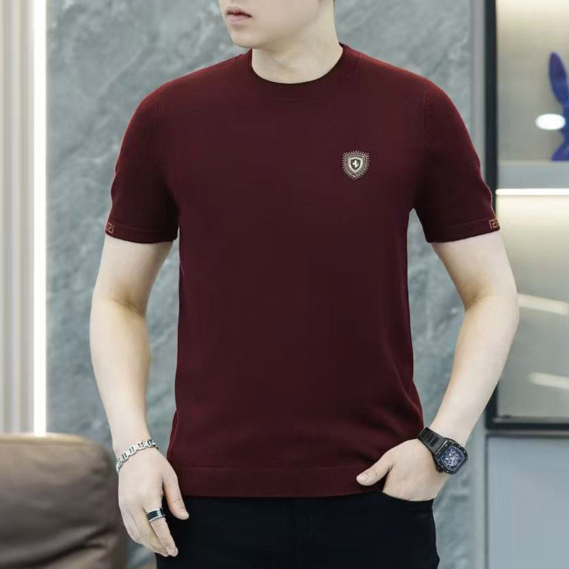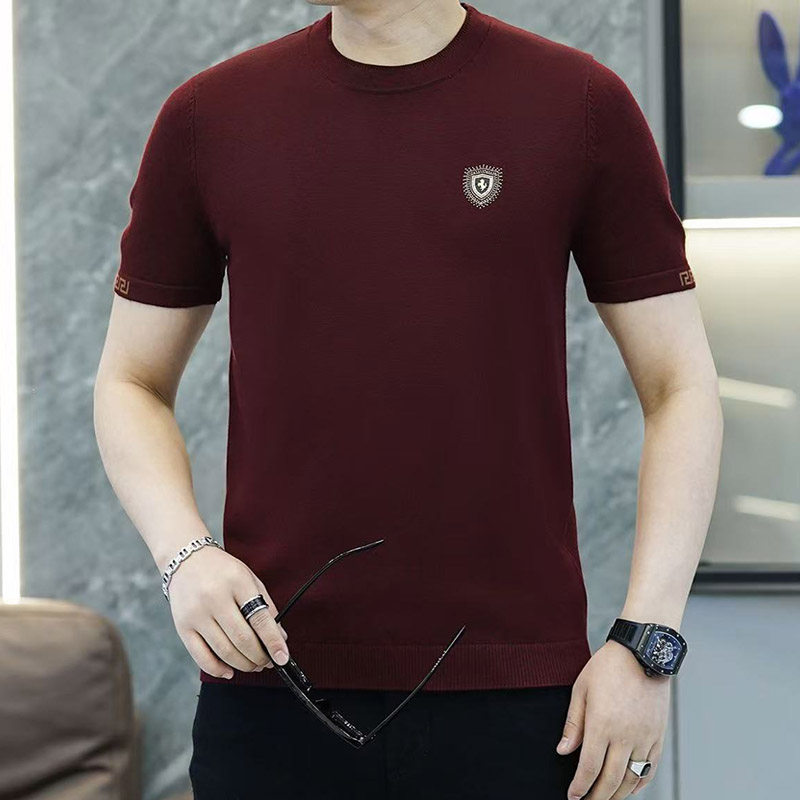 春秋冬季短袖圆领毛衣潮男士修身潮流针织打底衫半袖T恤红色小衫