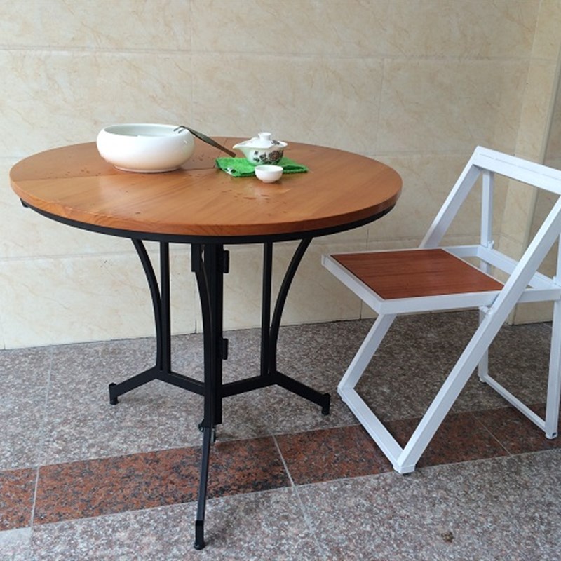 铁艺圆形桌子折叠实木桌小户型家用餐桌多功能伸缩圆桌桌椅组合