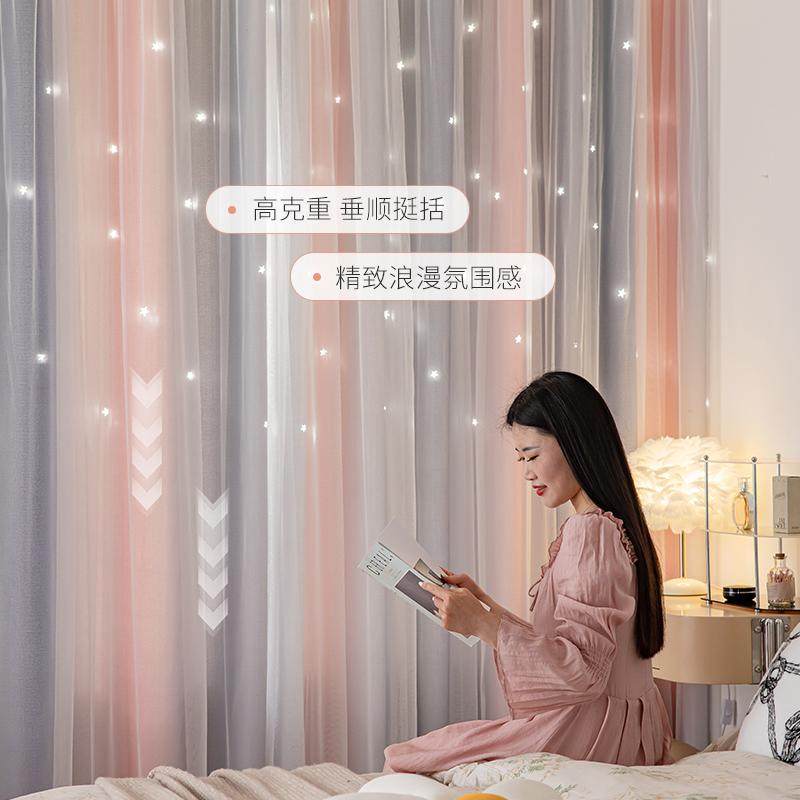 窗帘免打孔安装伸缩杆遮光卧室女生2024新款客厅儿童房女孩公主风