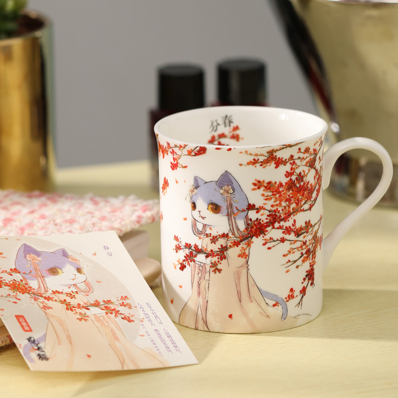 观复博物馆节气系列春分骨瓷马克杯创意个性情侣款咖啡杯可爱水杯