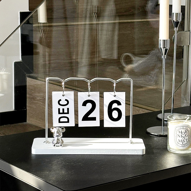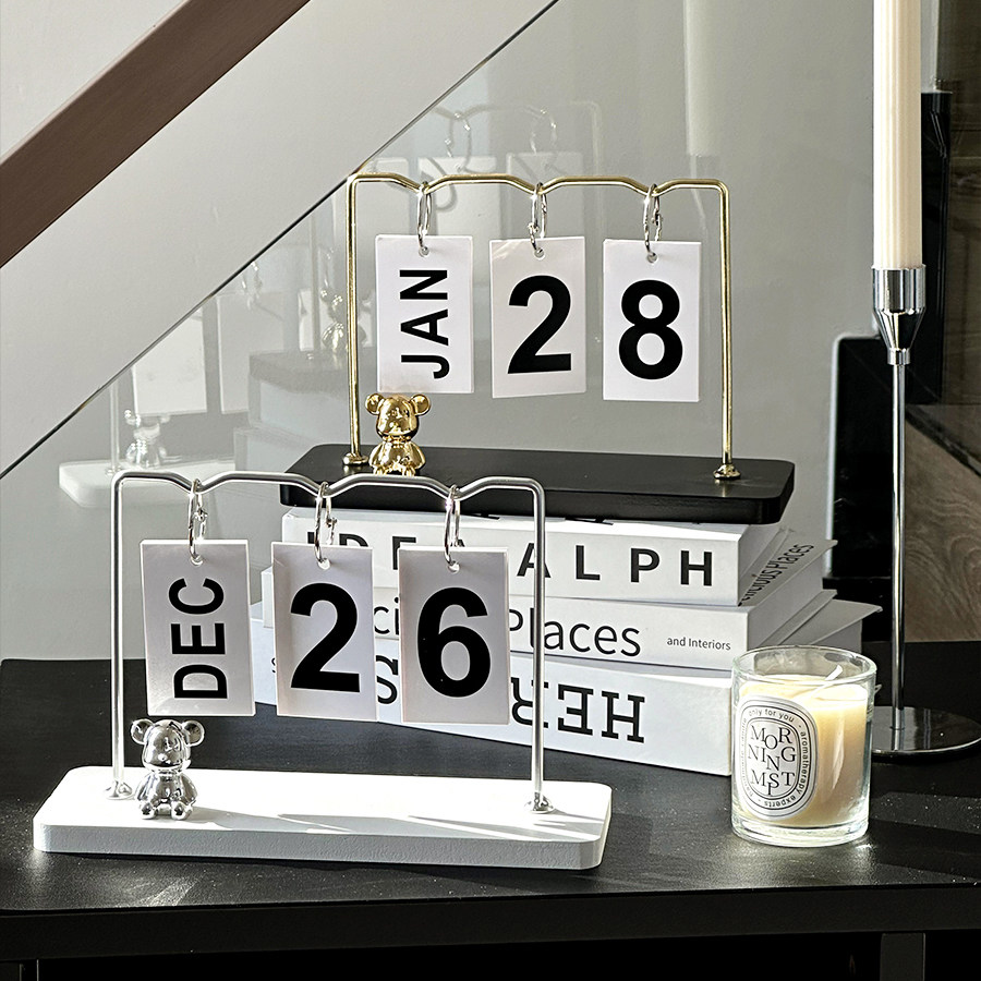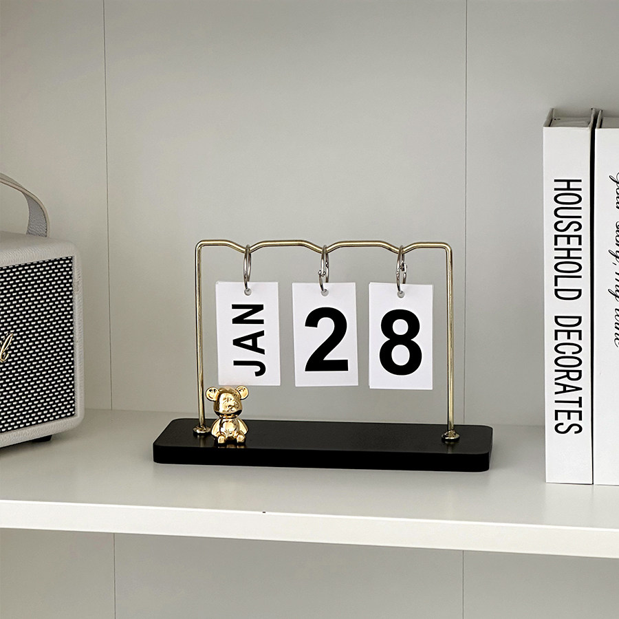 ins风小熊装饰卡纸日期牌铁艺翻页日历创意玄关办公桌面台历摆件