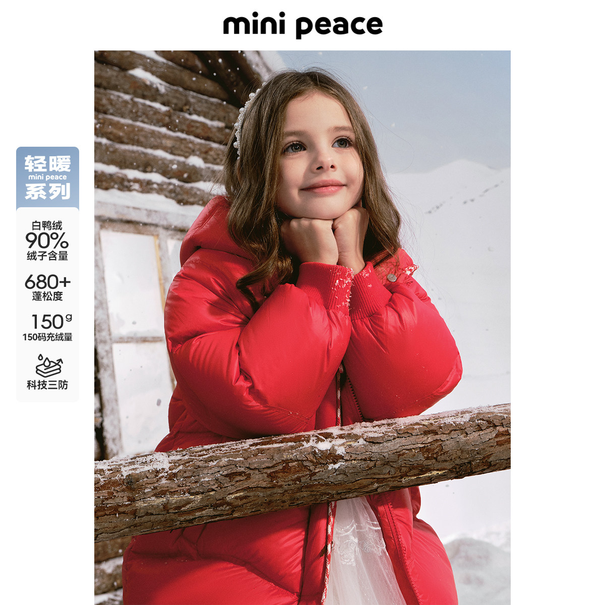 【专柜同款轻暖系列】太平鸟童装女童红色羽绒服三防年衣服