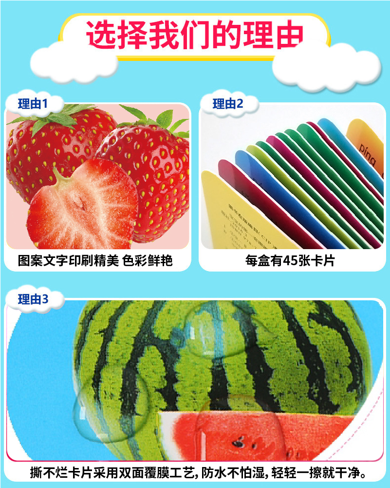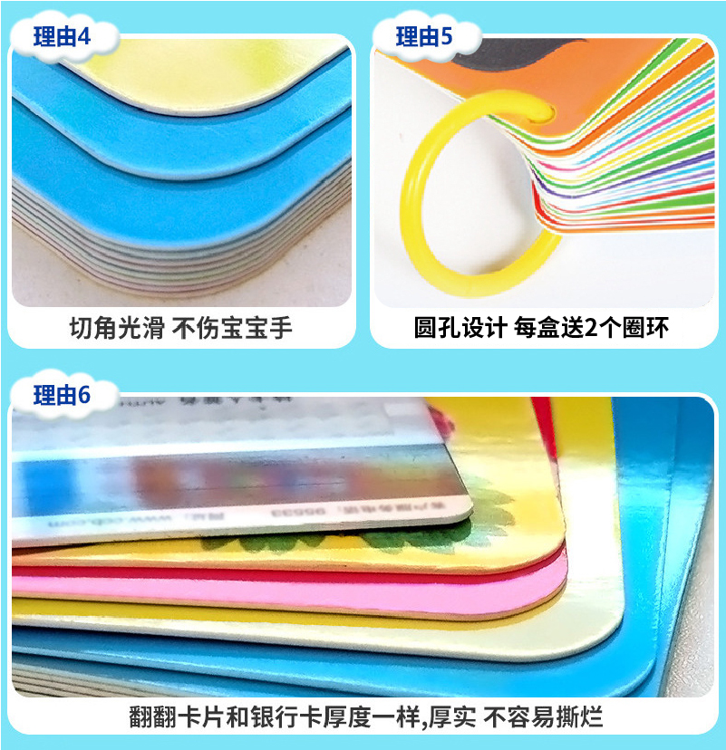 撕不破宝宝早教学习认知卡片幼儿童看图识数字卡撕不烂英语拼音动
