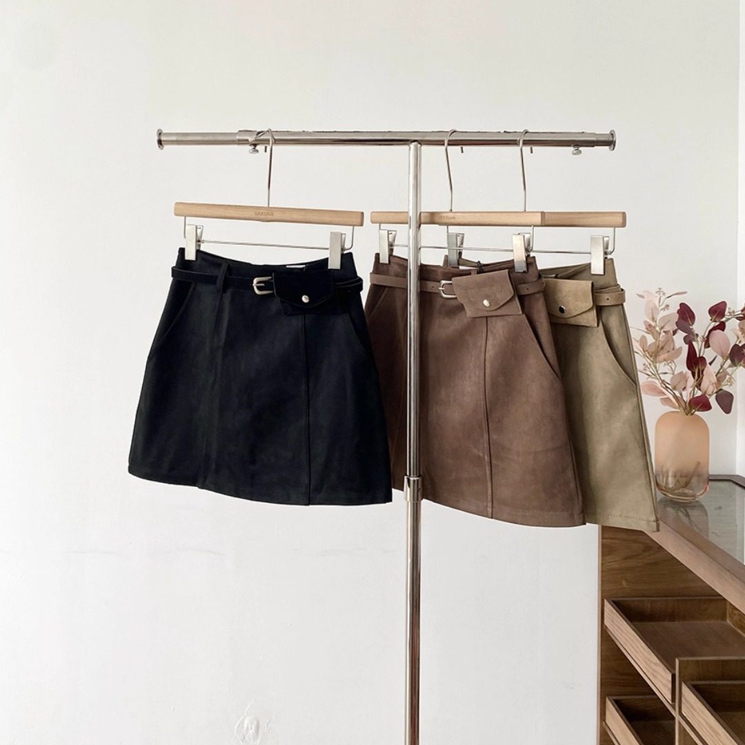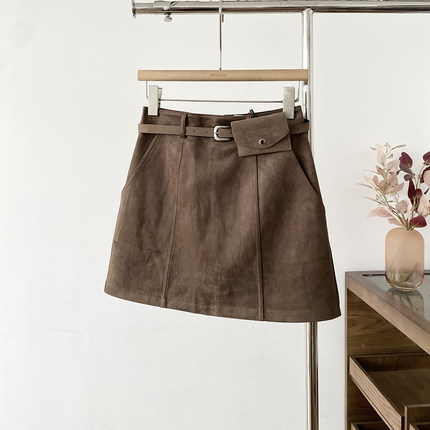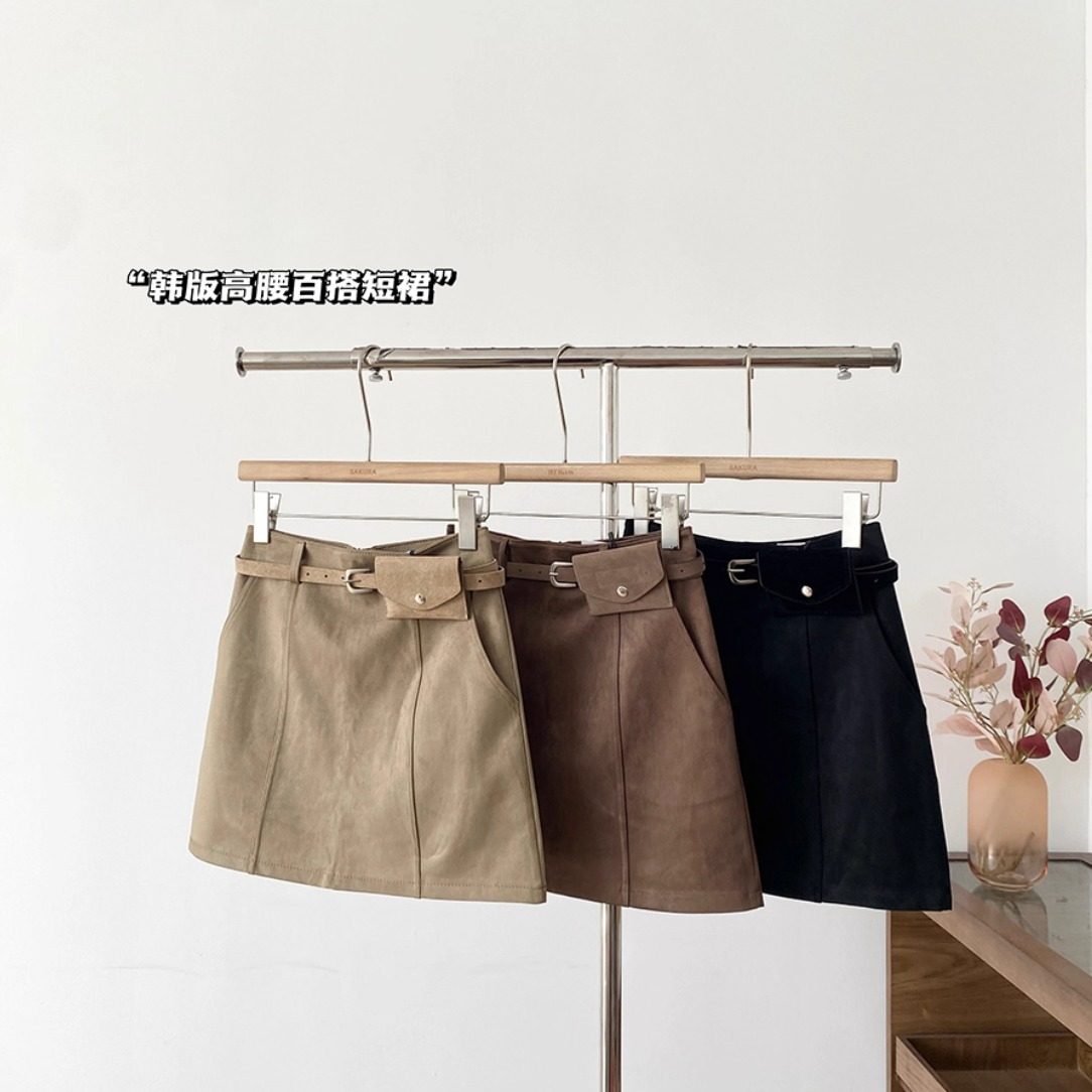 胖mm高腰麂皮绒防走光a字短裙