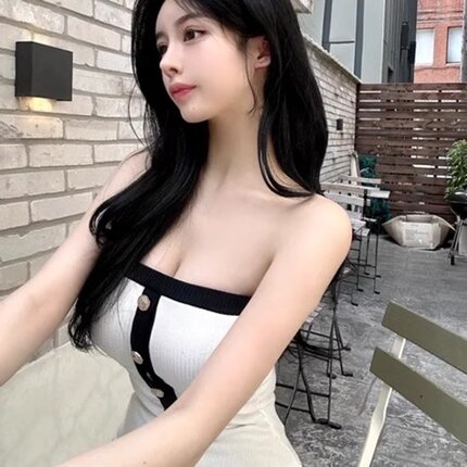韩国撞色边纽扣抹胸背心性感