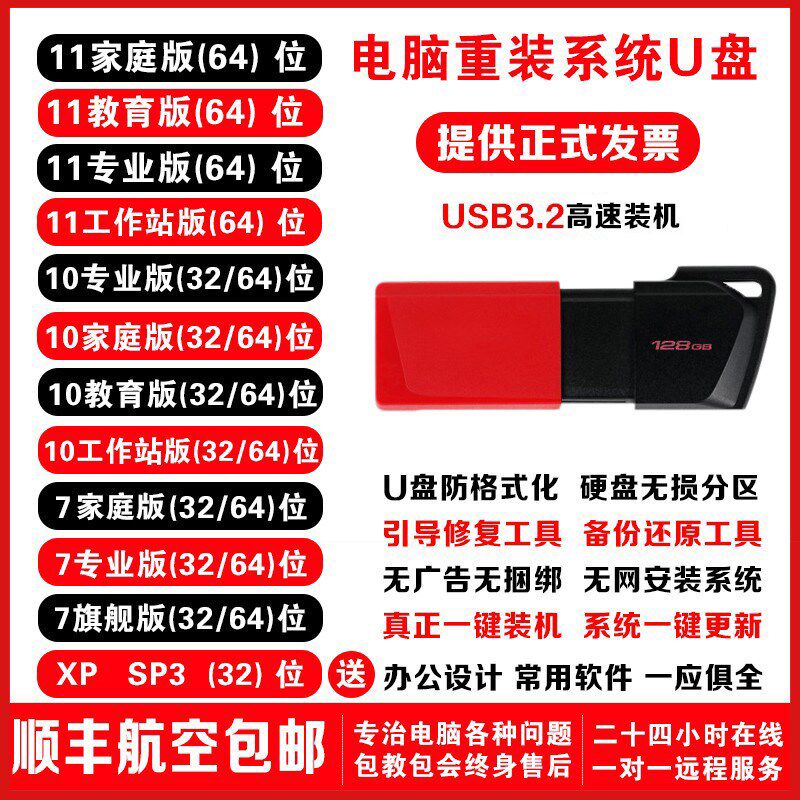 电脑重装系统盘一键安装纯净版PE启动优盘xp装机台式笔记本通用