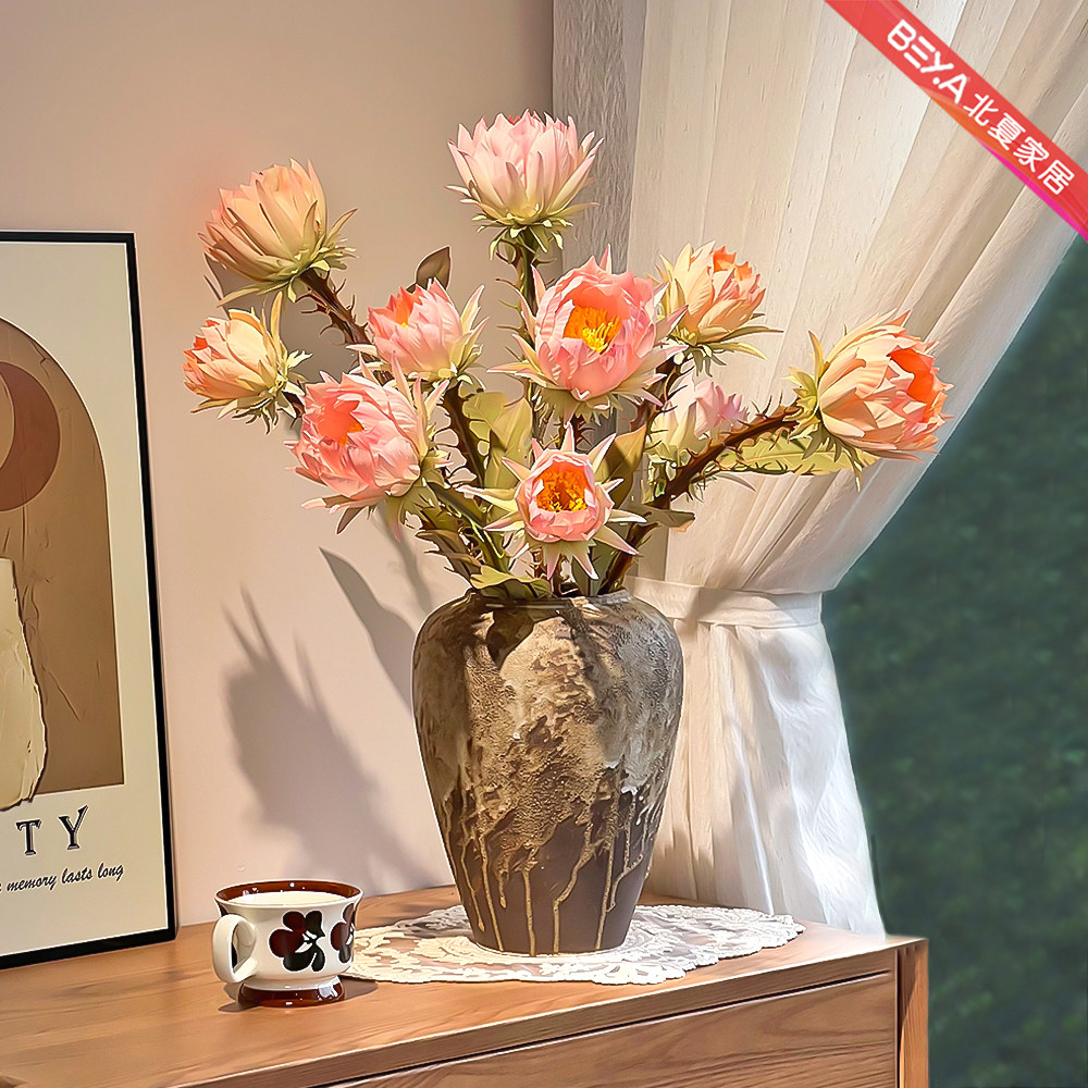帝王花仿真花假花摆设干花花束客厅摆设餐桌插花装饰品绢花高档花