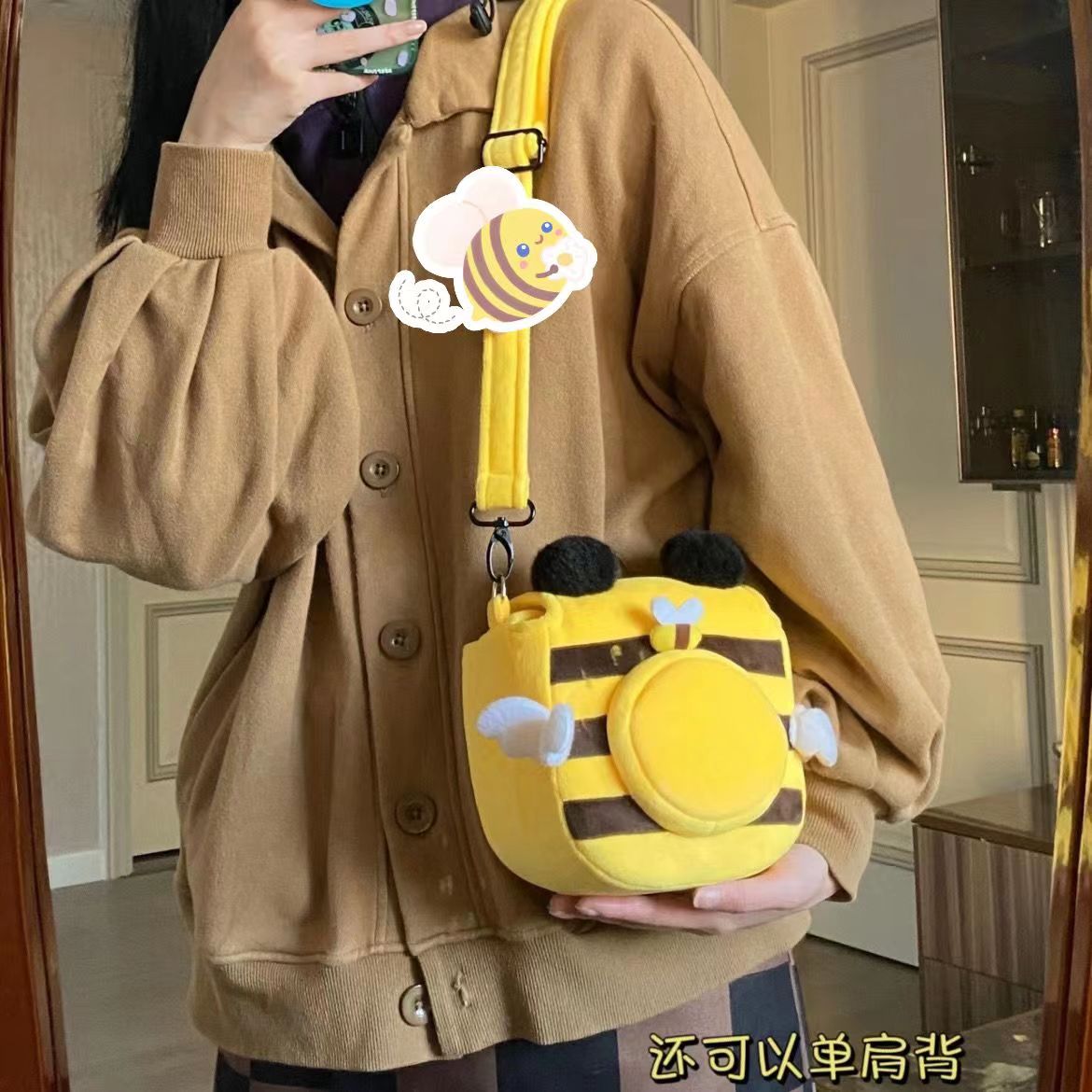 可爱创意趣味小蜜蜂拍立得相机包mini7c mini8 mini90保护套毛绒