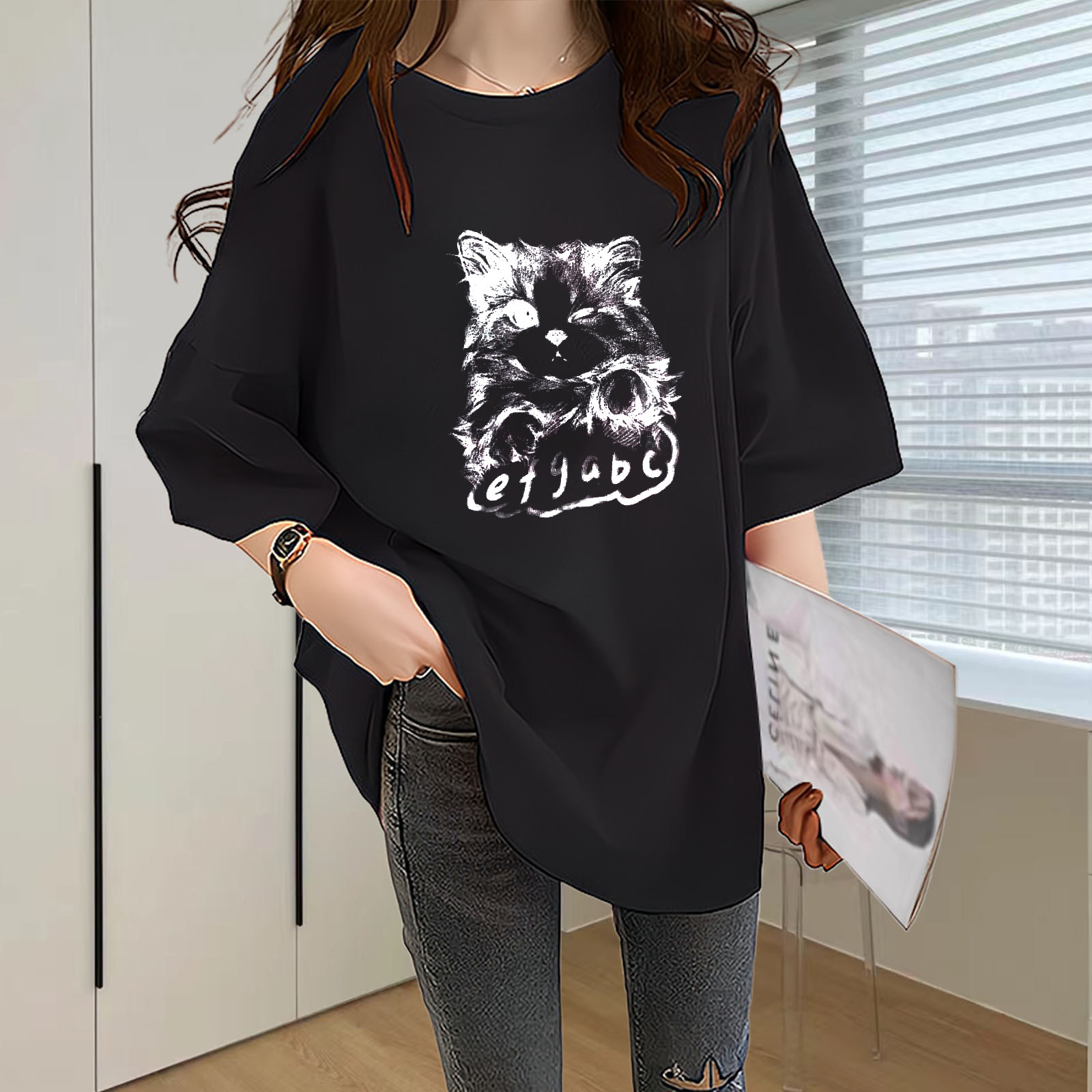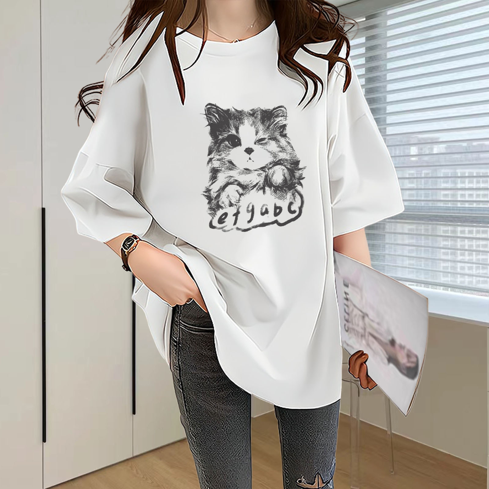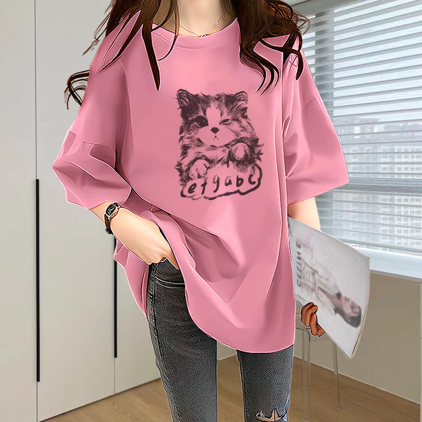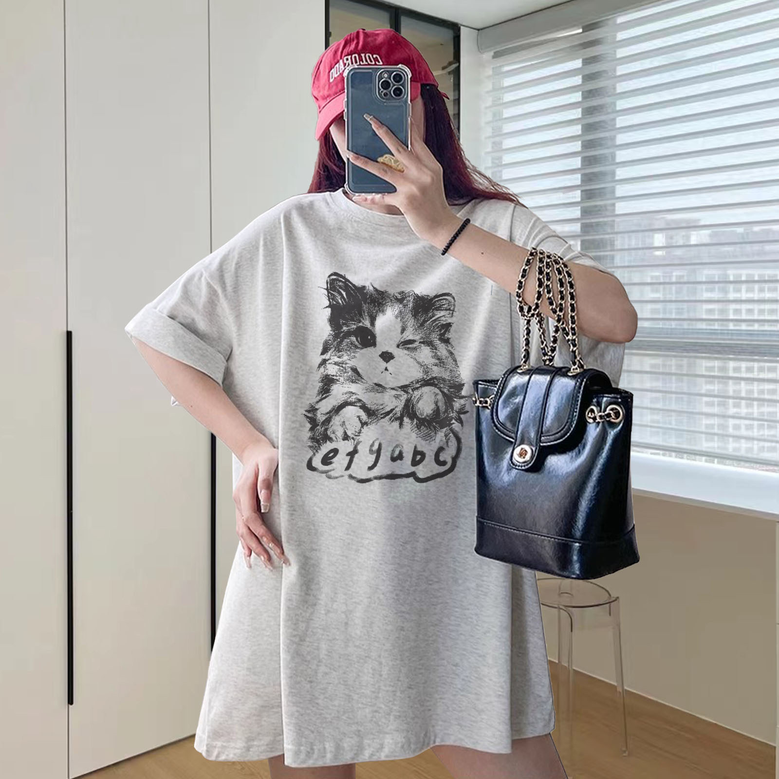 新款搭配鲨鱼裤纯棉短袖t恤女中长款大码宽松砖红色半袖上衣夏季