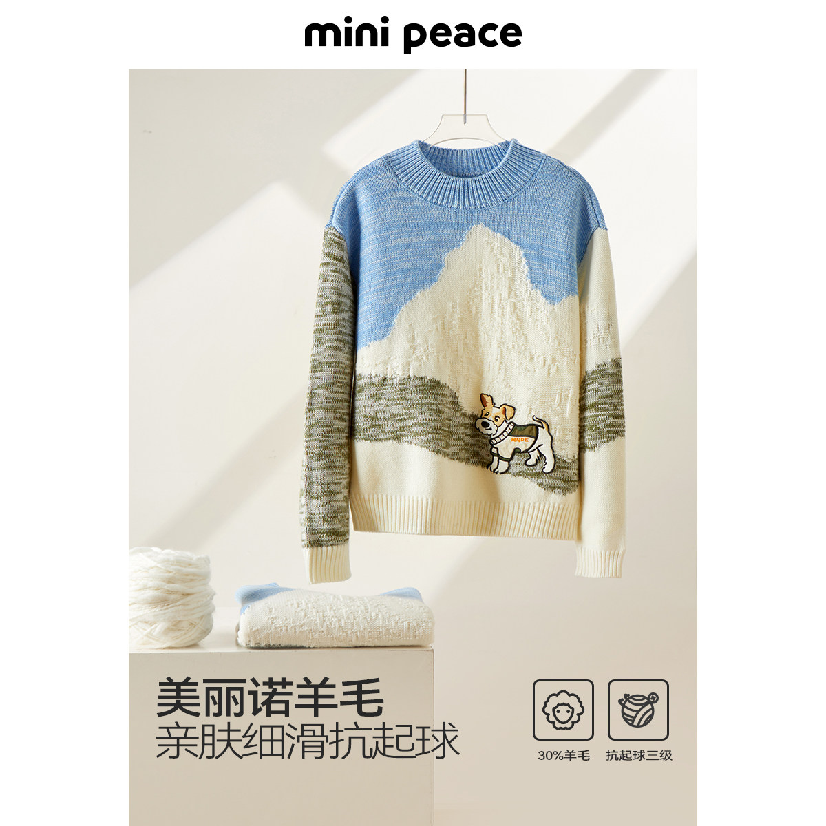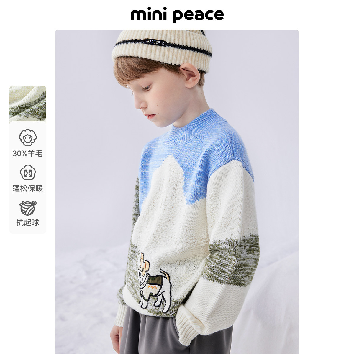 [羊毛衫]MINIPEACE太平鸟童装男童毛套衫小狗卡通毛衣儿童毛衫冬