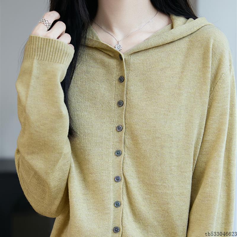 甄选单品~连帽纯色开衫女外搭春秋针织衫外套2025年新款洋气毛衣