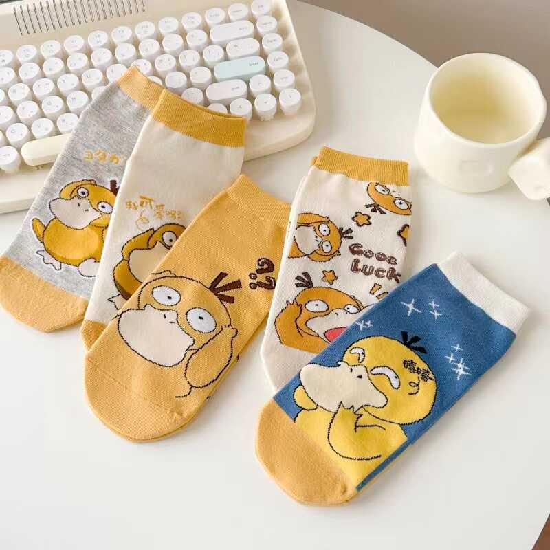 袜子女短筒袜春秋纯棉底日系可爱卡通小鸭子网红吸汗夏季薄款学生