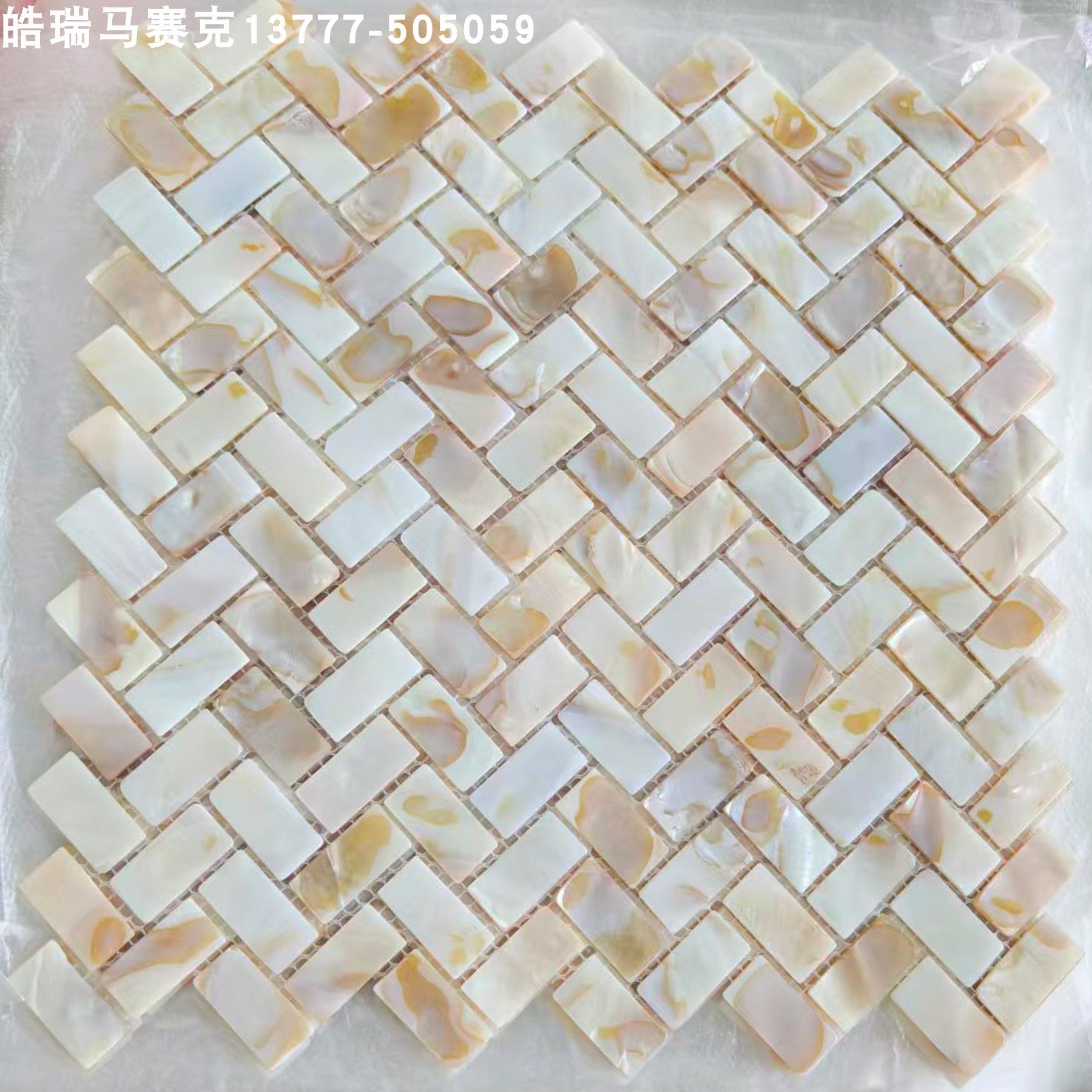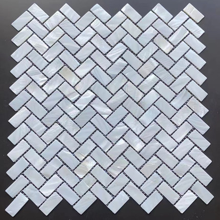 人字拼长条超白天然贝壳马赛克背景墙厨房卫生间鱼骨形瓷砖墙贴