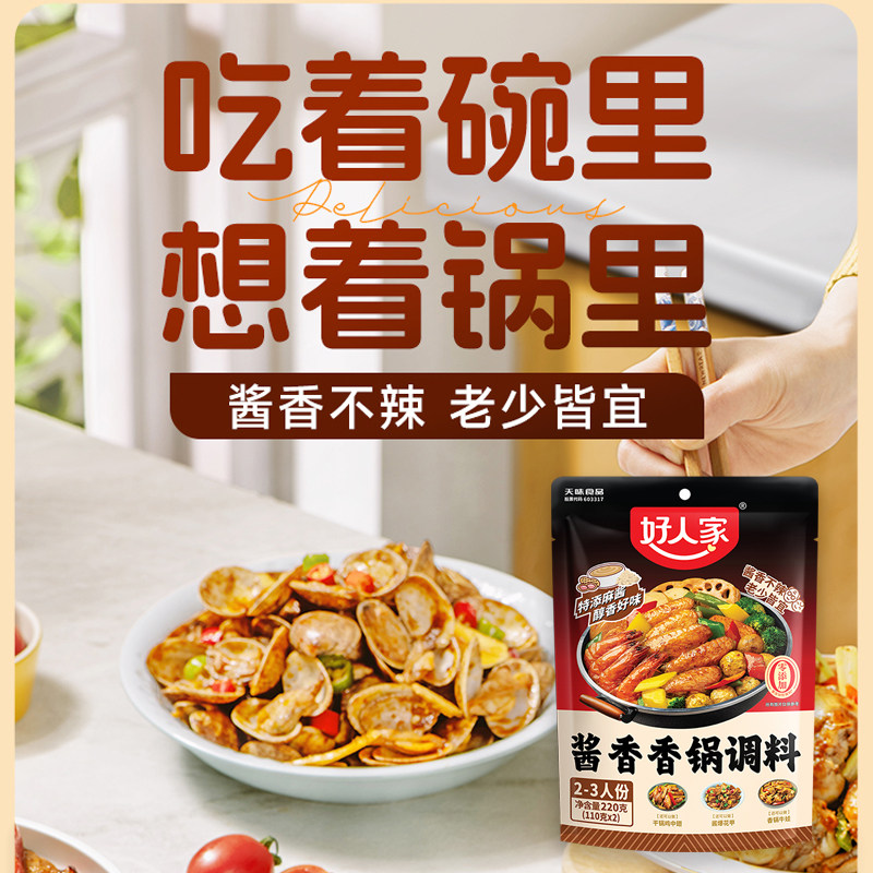 好人家酱香香锅调料家用四川麻辣香锅底料不辣的牛蛙香辣虾干锅料