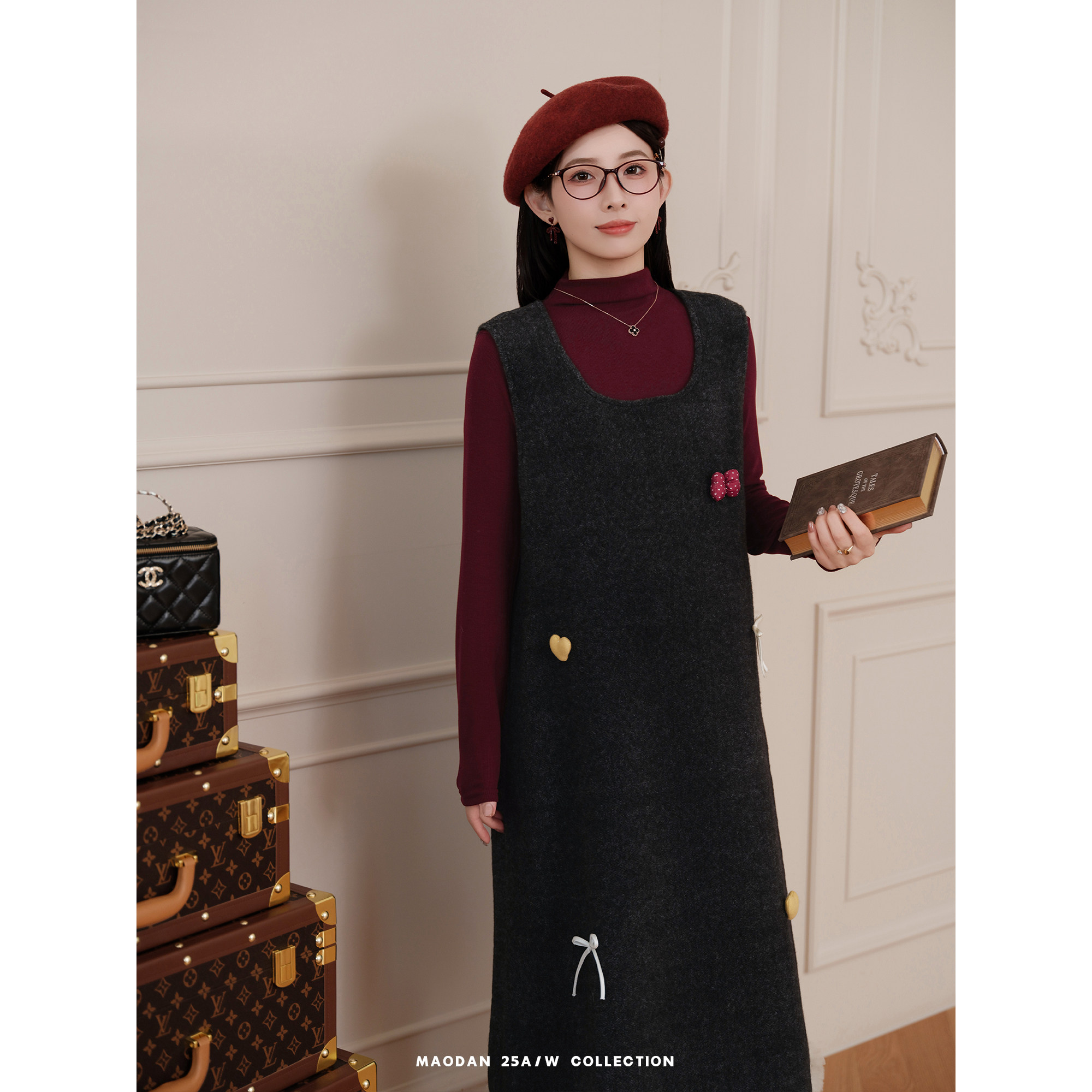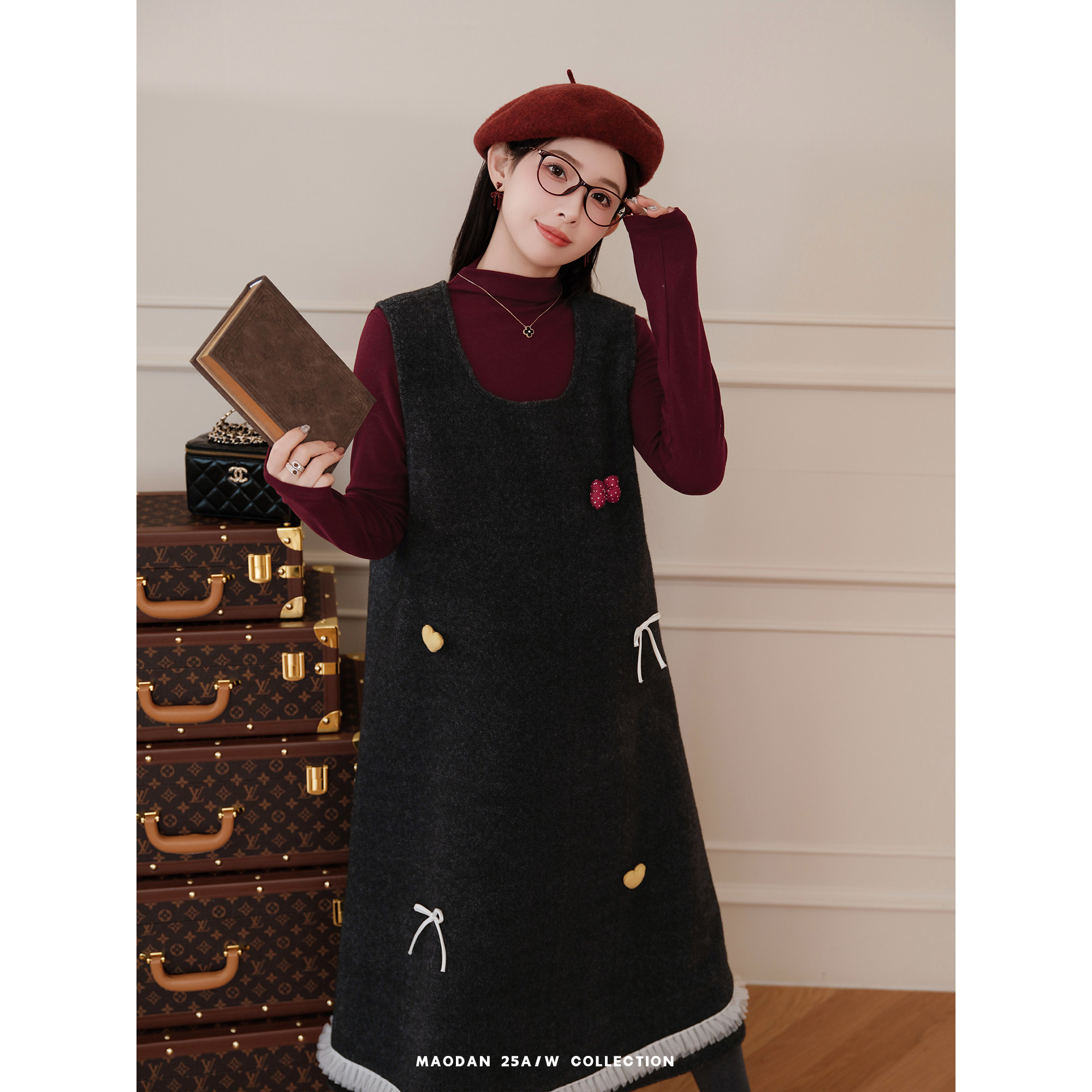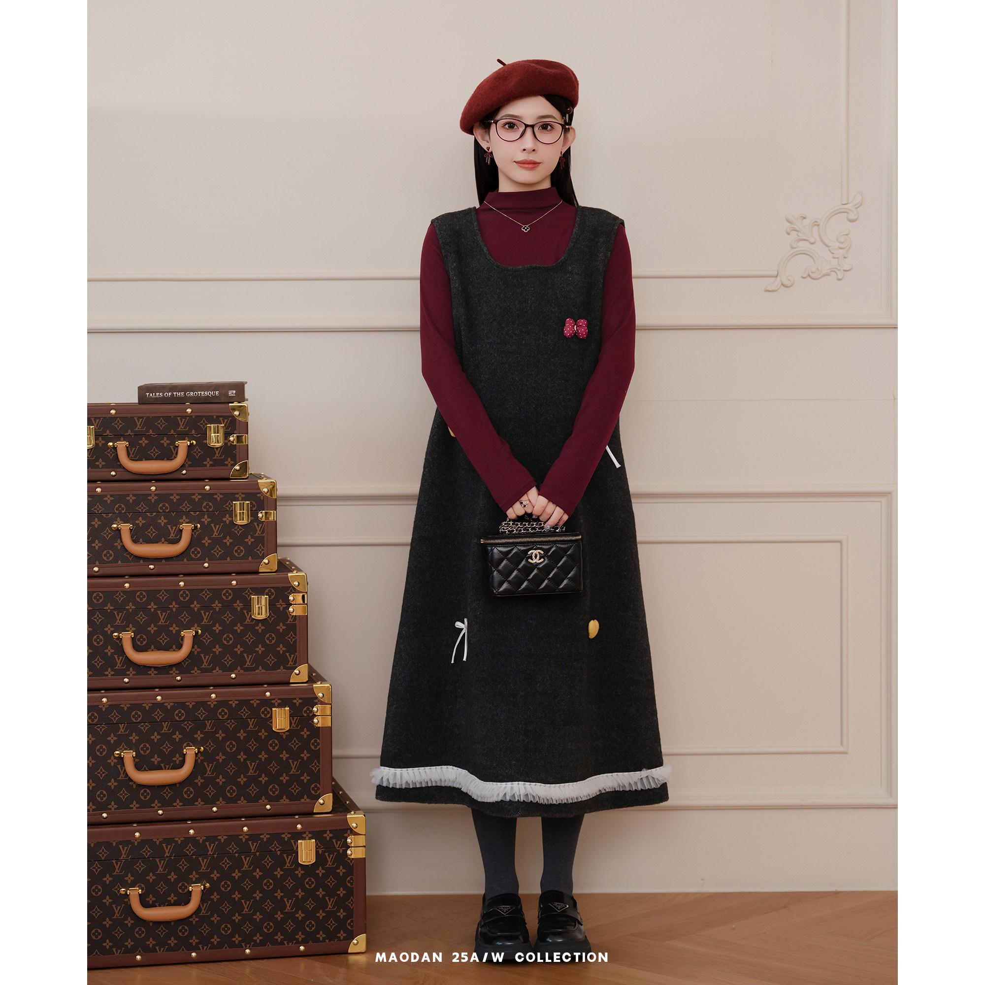 猫单【红莓果酱】娜娜的孕期穿搭孕妇装冬季新品洋气磨毛背心裙