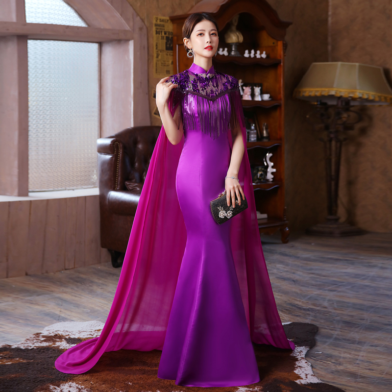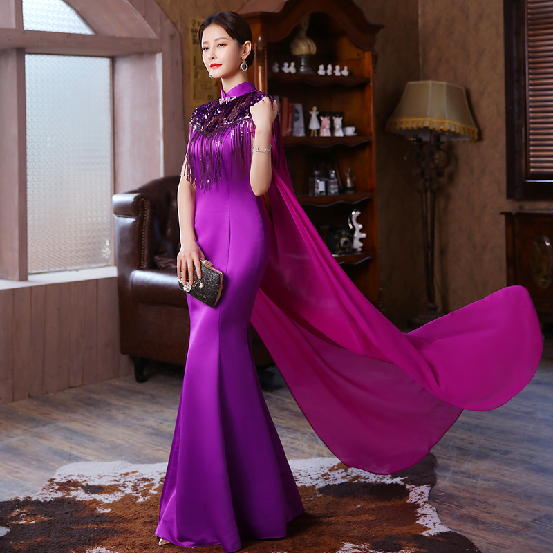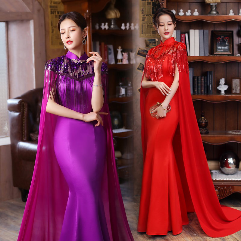 走秀旗袍裙2023新款长款优雅高档演出服时尚中国风主持人晚礼服女