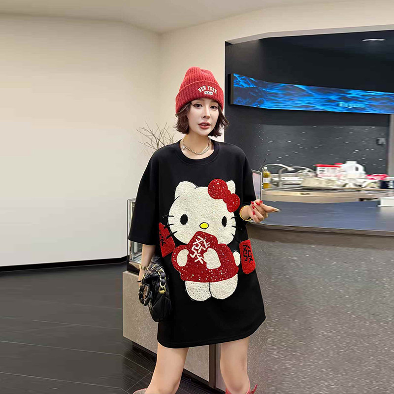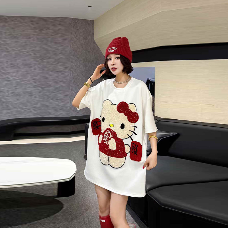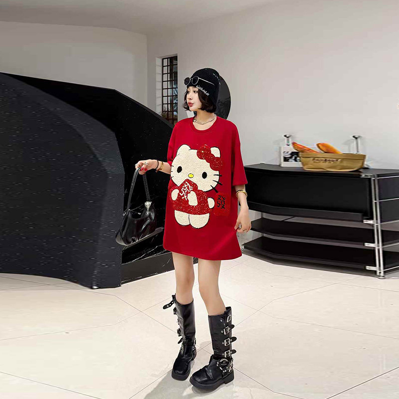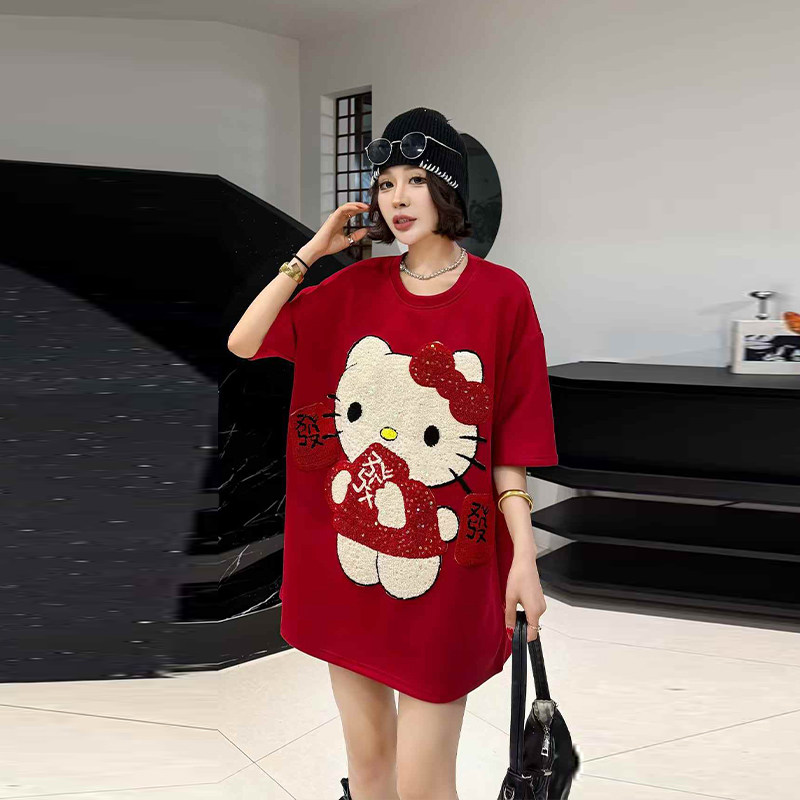 大码女装卡通图案短袖T恤衫韩版学院风胖妹妹甜美减龄新年款上衣