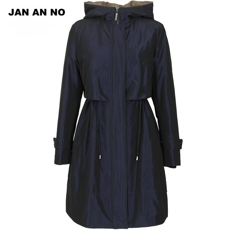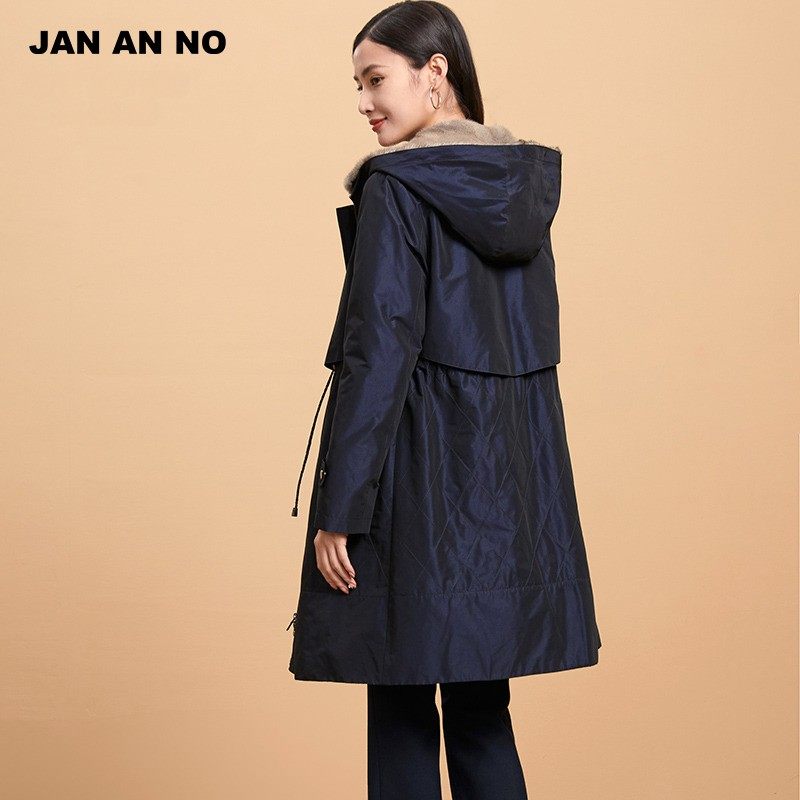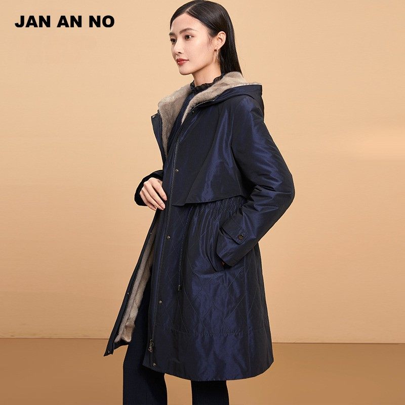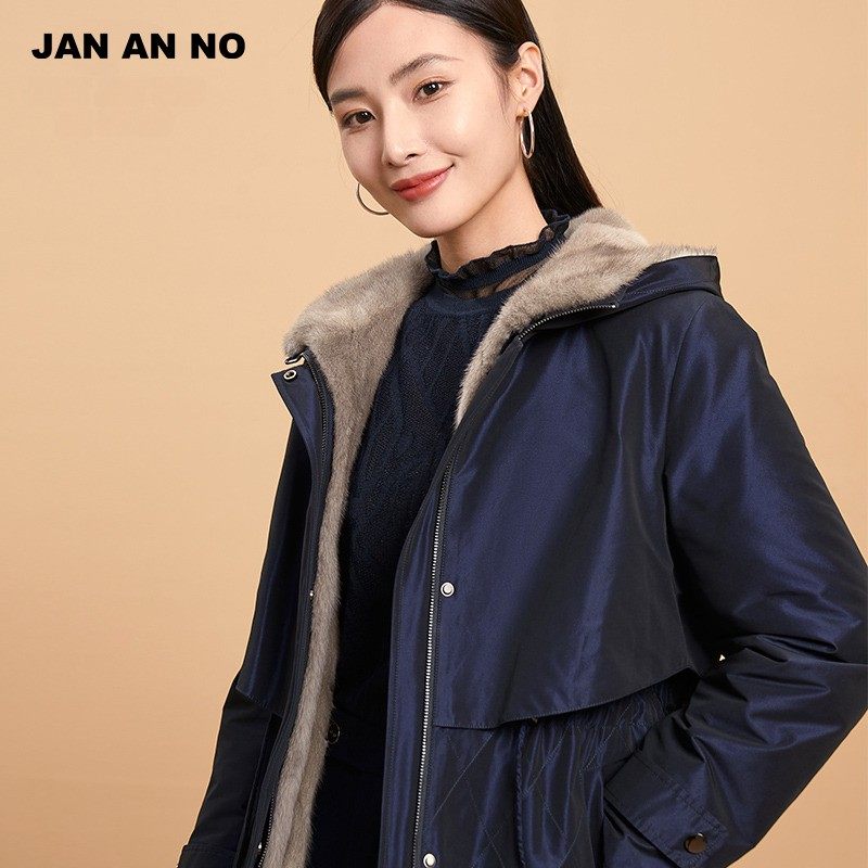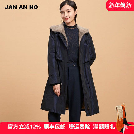 简爱诺冬季水貂毛皮可拆卸内胆中长款连帽保暖尼克服女J2160165NK