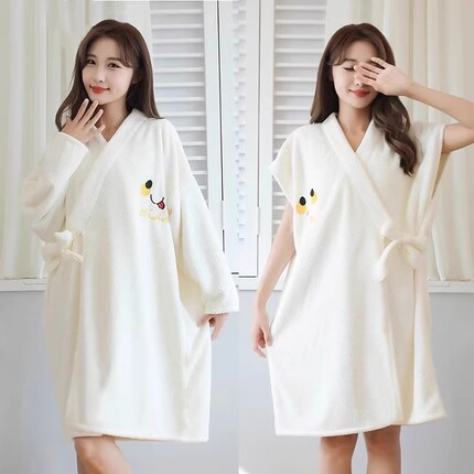 浴袍女夏季2025新款珊瑚绒可穿式女款睡袍吸水速干短袖大码浴巾裹