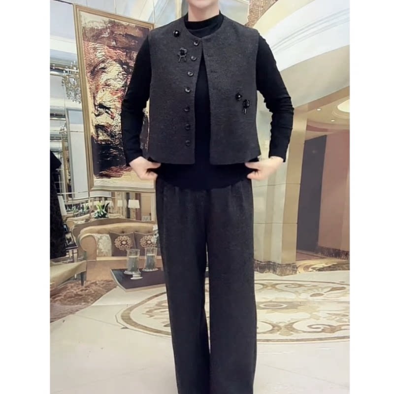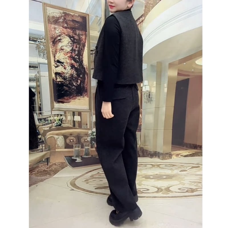 马甲直筒裤三件套洋气套装减龄