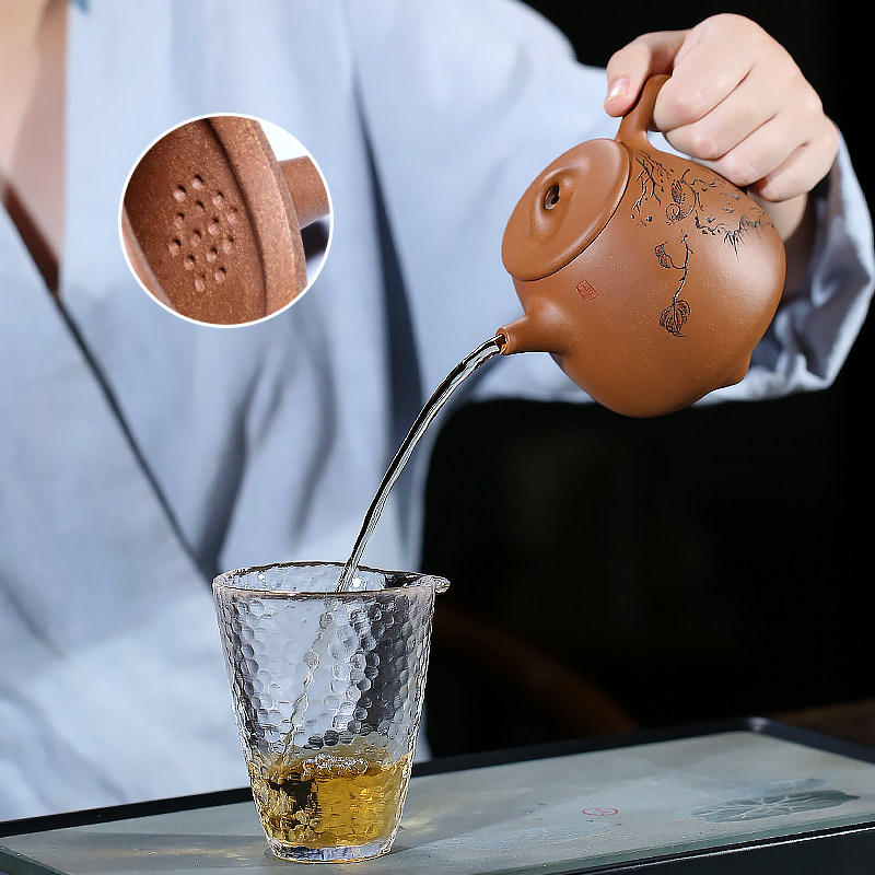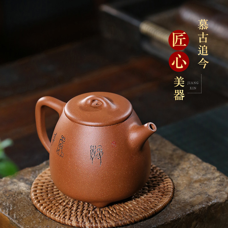 雨轩砂艺宜兴紫砂壶纯全手工原矿段泥刻绘高石瓢壶泡茶壶茶具装